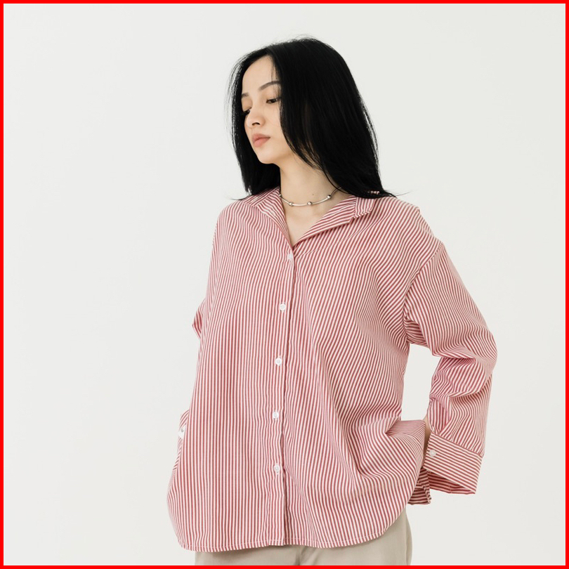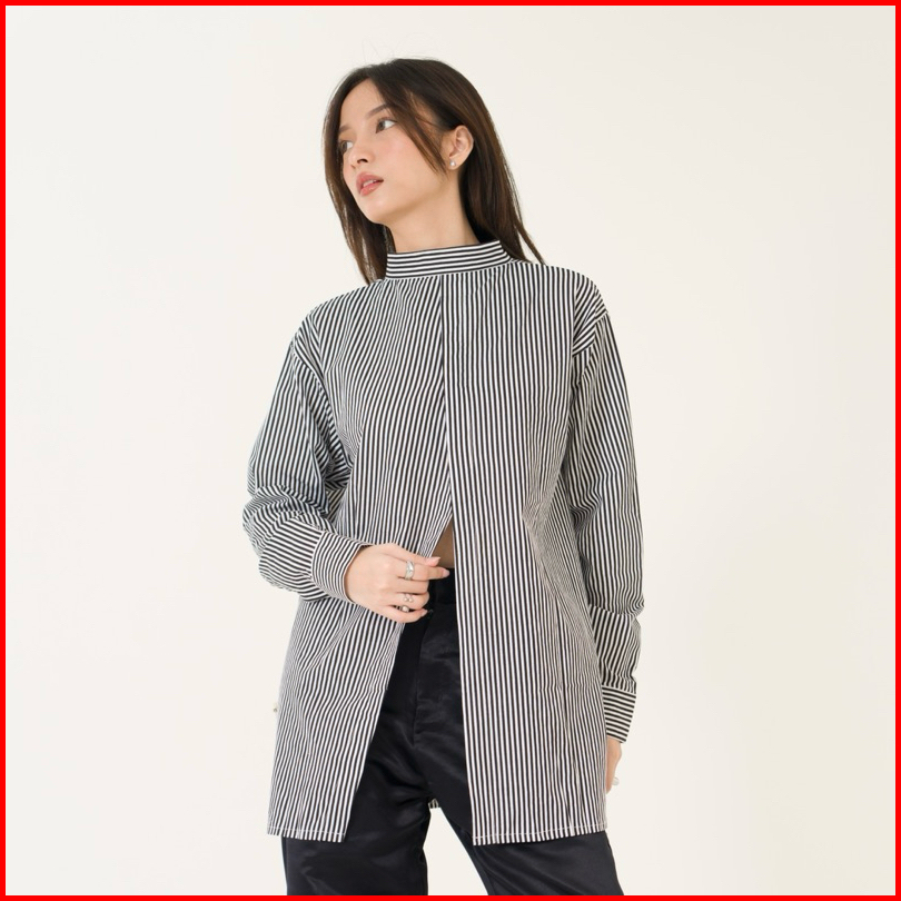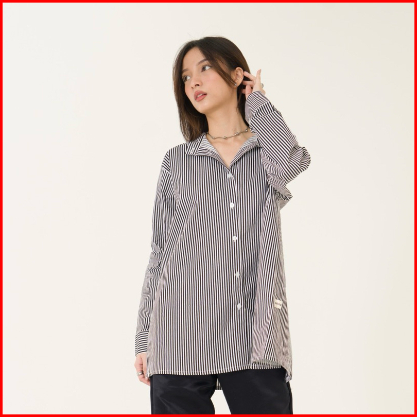 Kemeja Garis-garis Katun Dua Cara Shopinkae