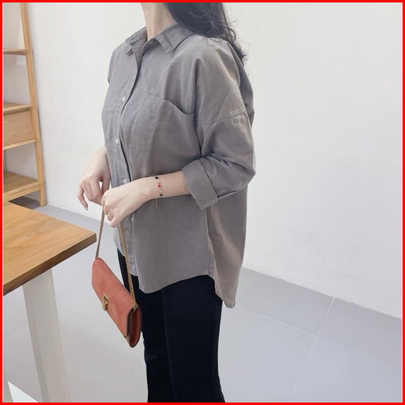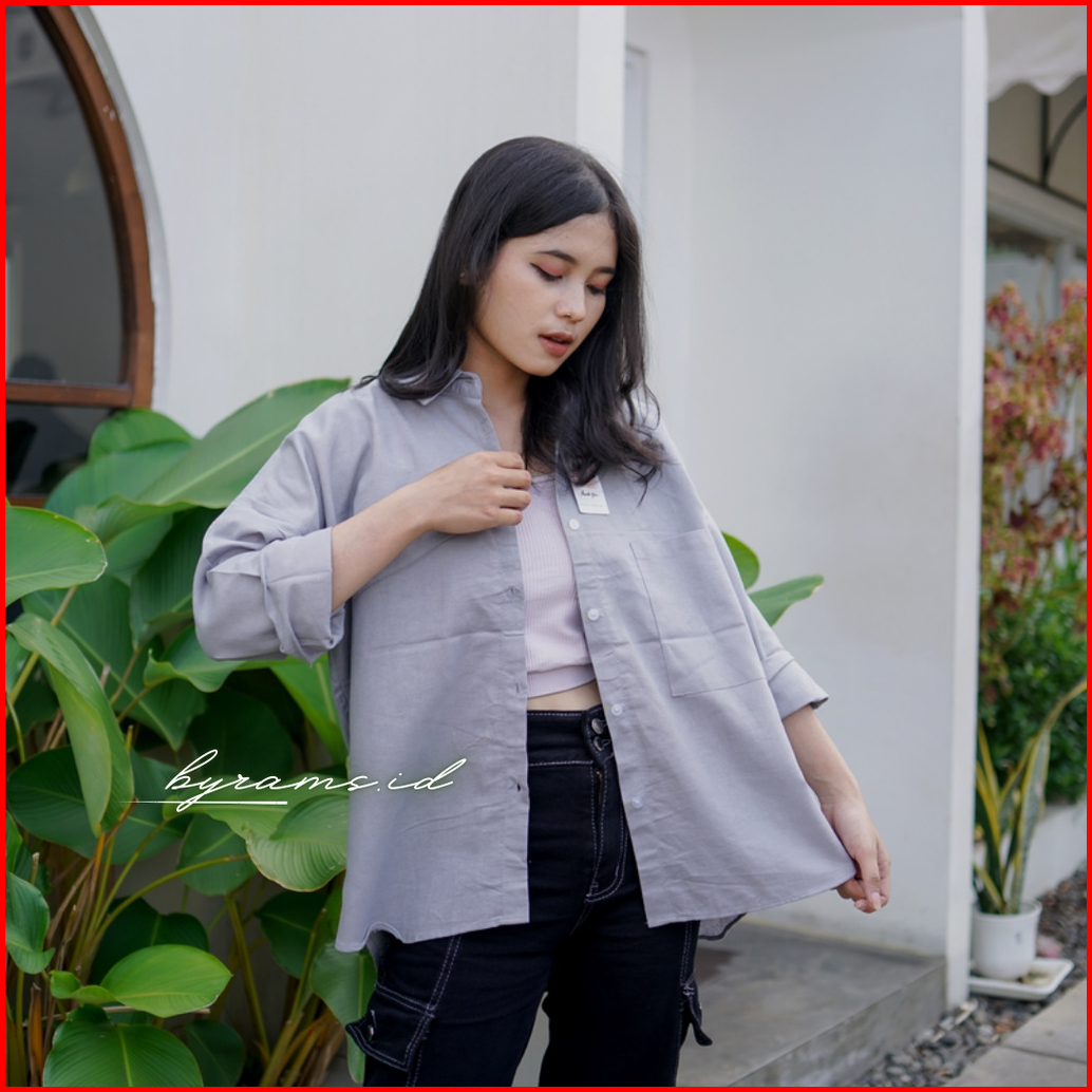 Kemeja Wanita Linen Oversize Olivia Shirt Linen Pocket Premium Tebal
