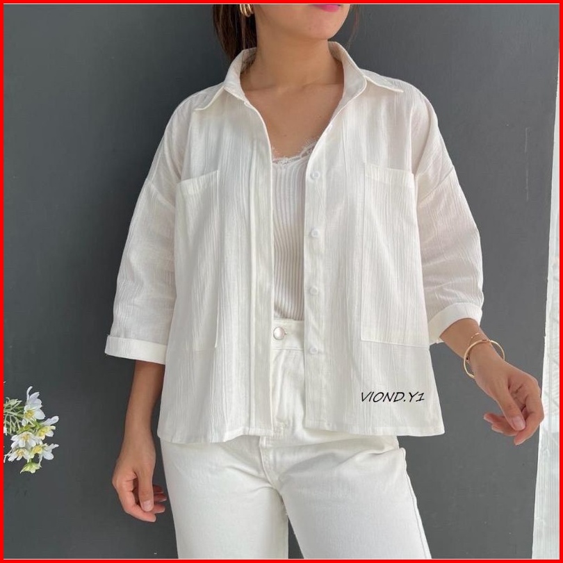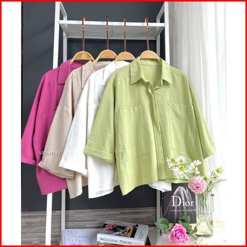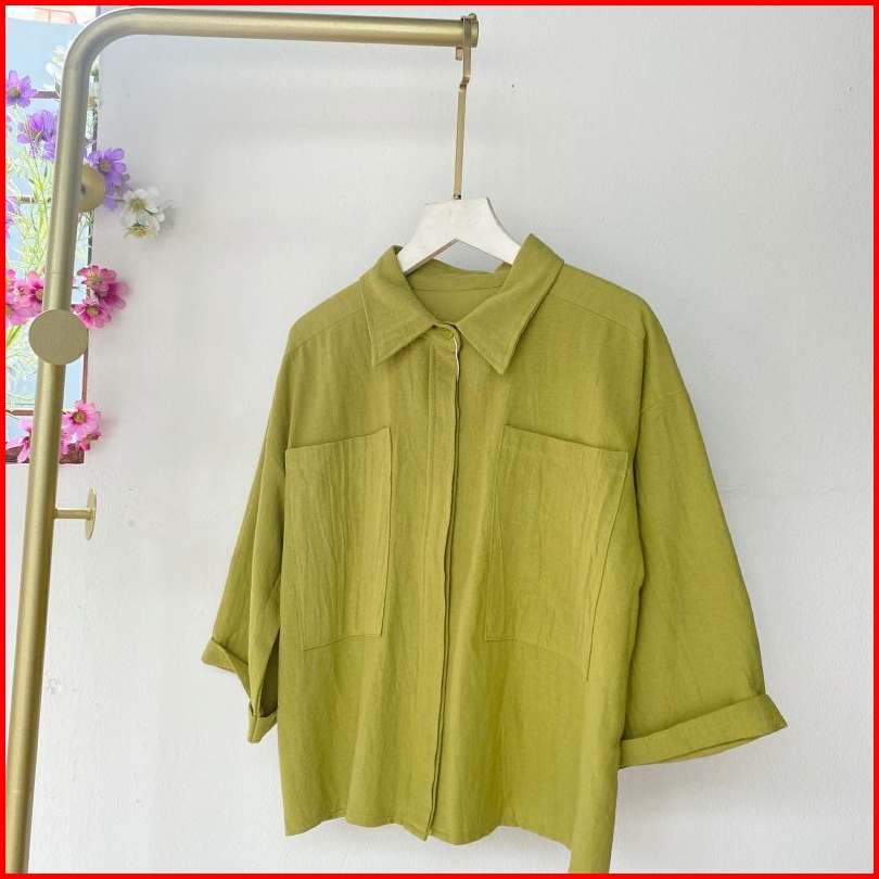 Kemeja Linen Wanita Atasan Wanita Korean Style Kemeja Kantong Terbaru