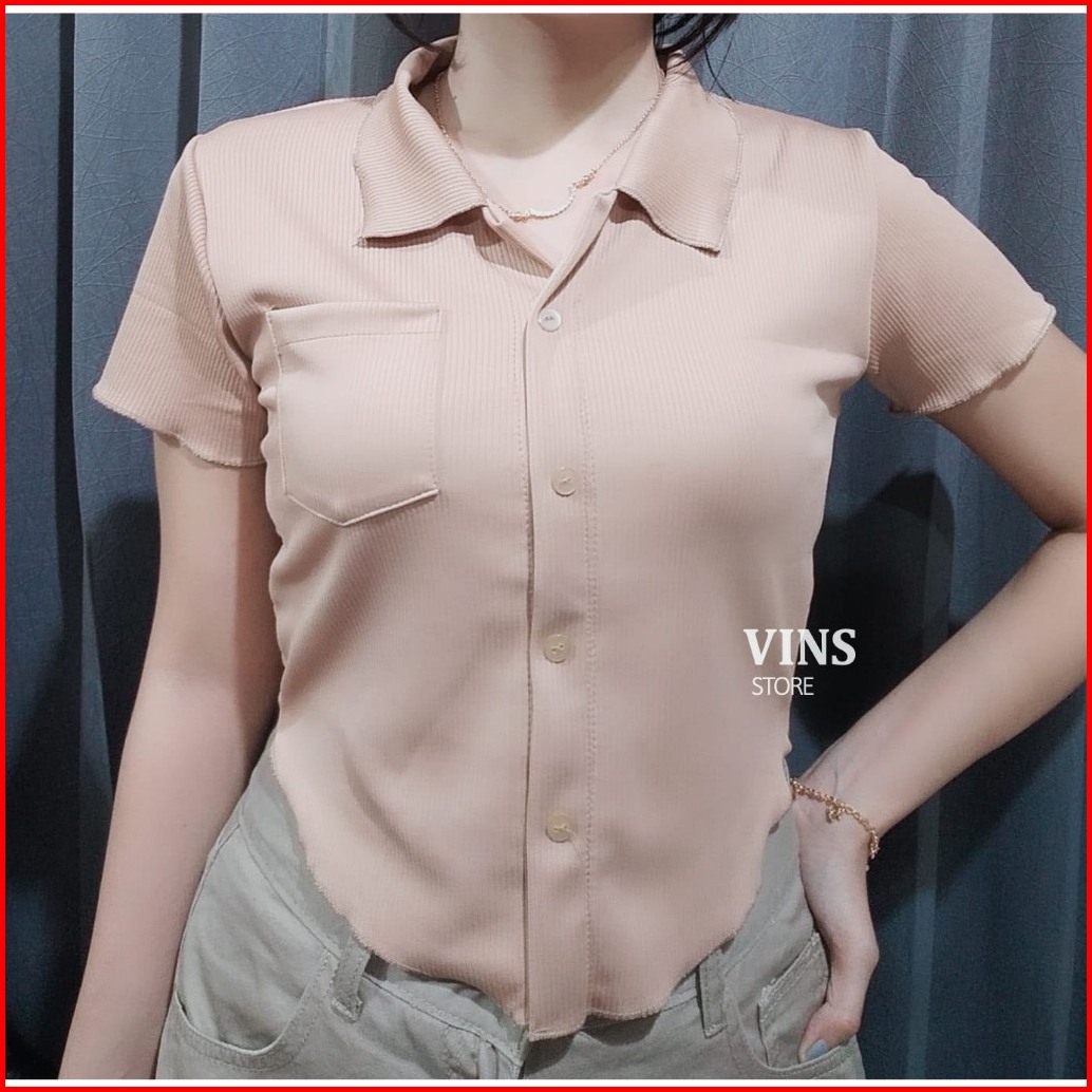 Vinest - Crop Top Luna Knit Premium Atasan Wanita Korea Knit Premium