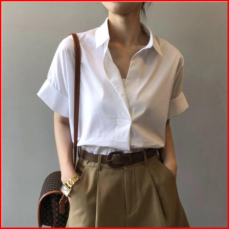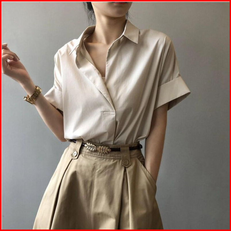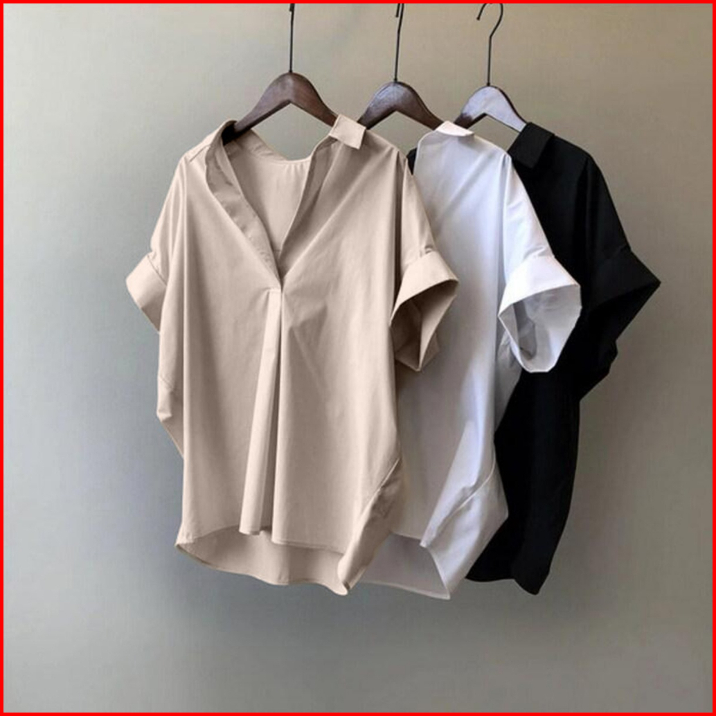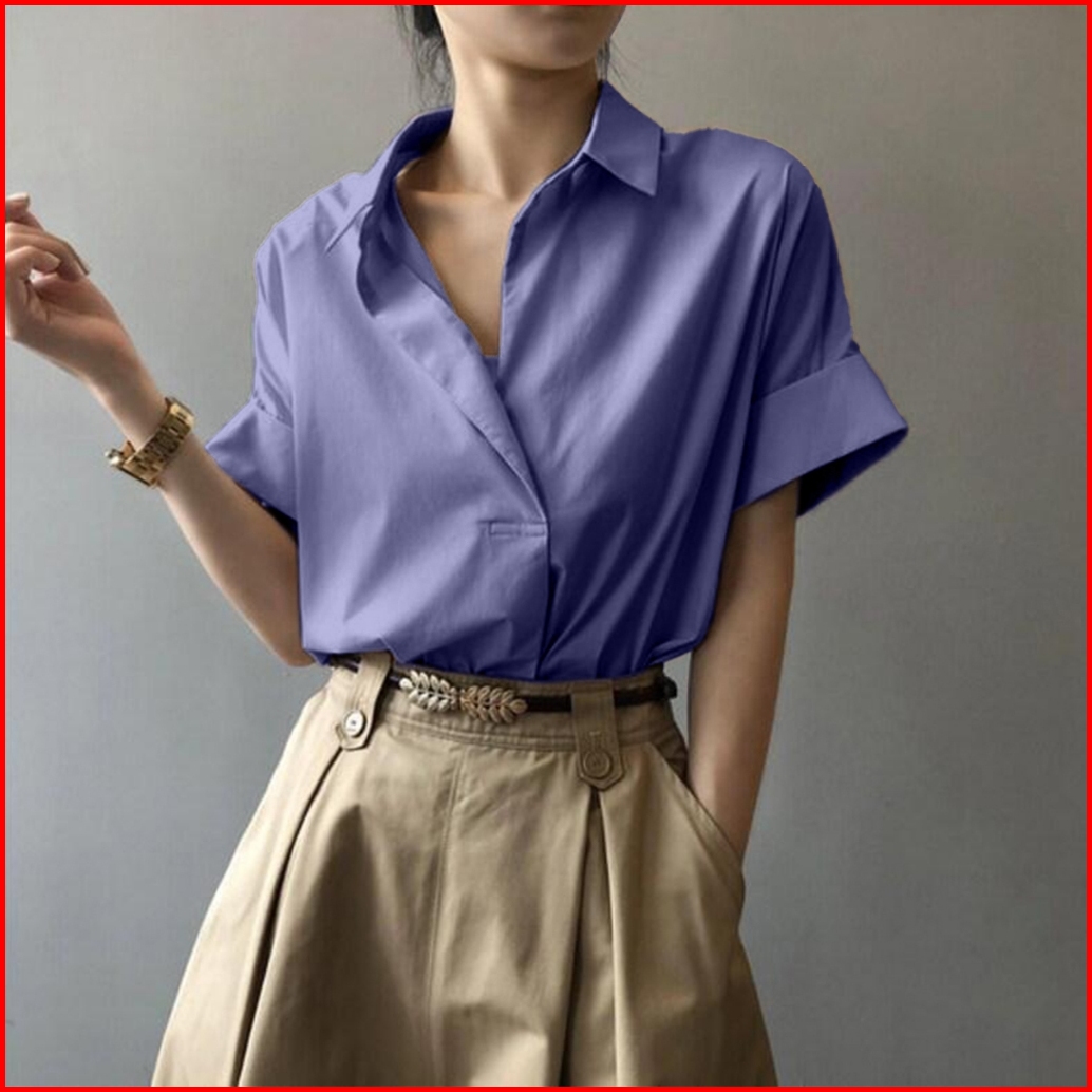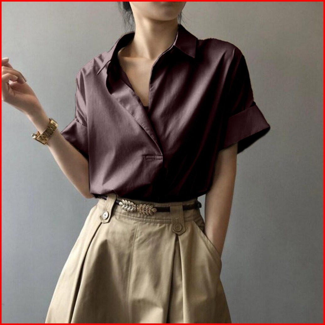 Prqueen Fashion Cocoa Blouse Blouse Wanita Tangan Pendek Katun Rayon Twill Ukuran S M L Xl Xxl