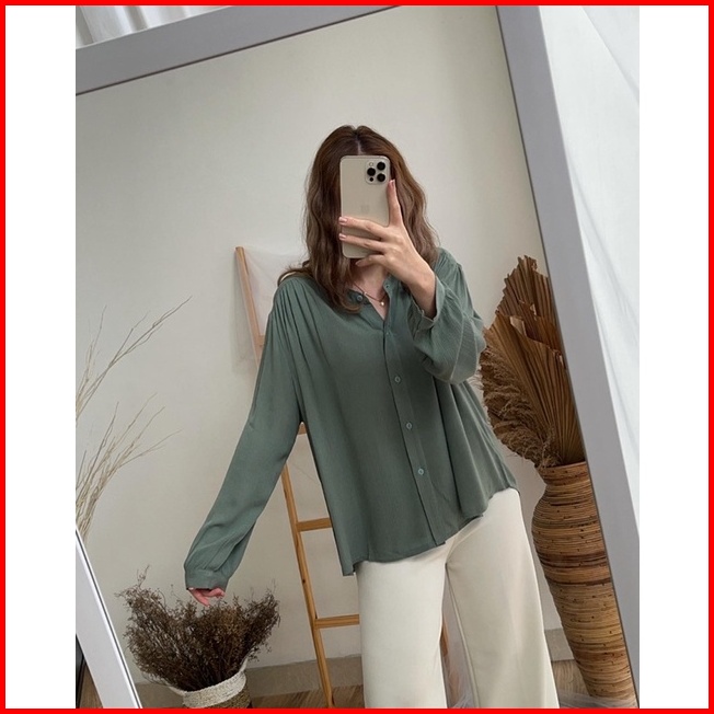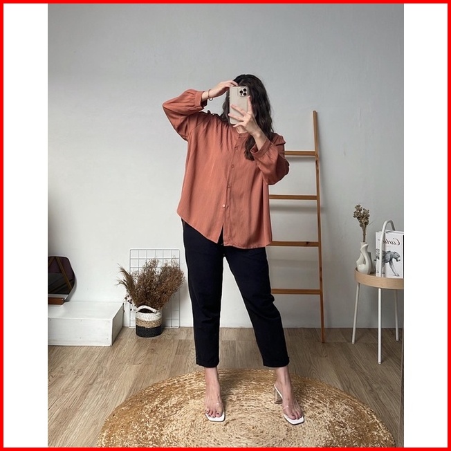 Isabels Longshirt Fashion Kemeja Basic Oversized Atasan Lengan Panjang Blouse Wanita Atasan Wanita Outer Nyaman Kemeja K