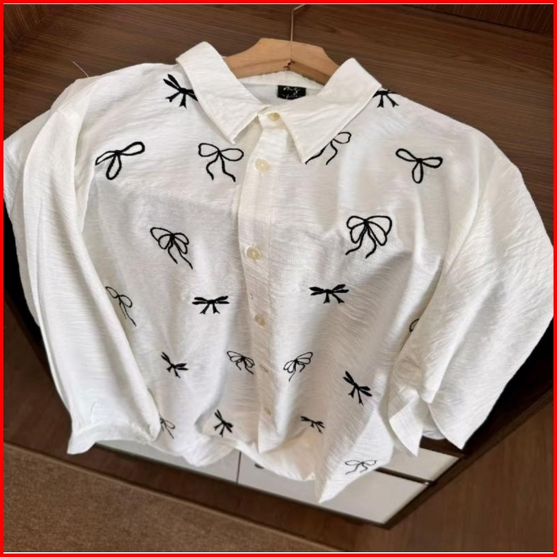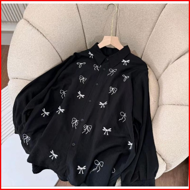 Haidar Id - Zoya Blouse Bordir Atasan Wanita Lengan Panjang Casual Korean Style Vintage Pure Linen