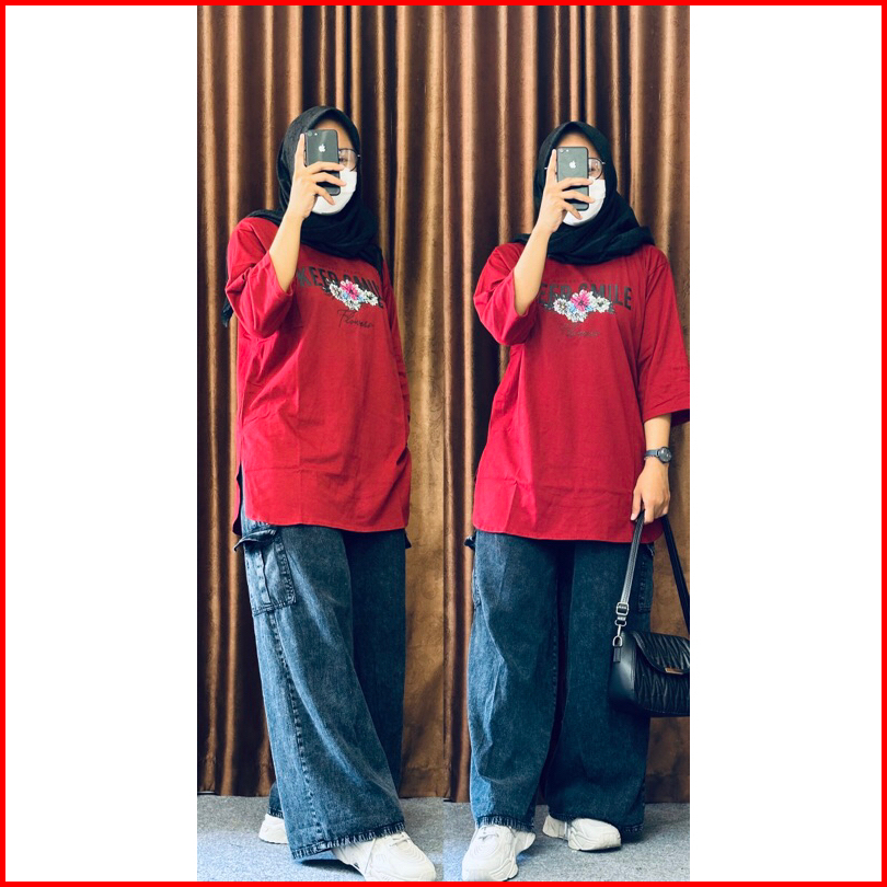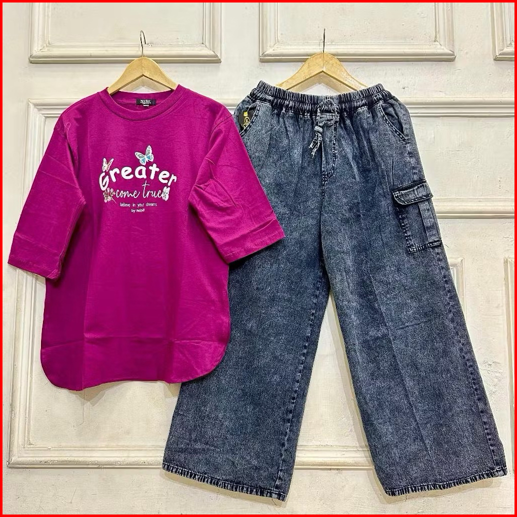 Setelan Kulot Jeans Wanita Atasan Combed 20s Celana Jeans Cargo Setelan Wanita Best Seller
