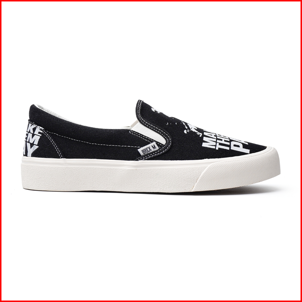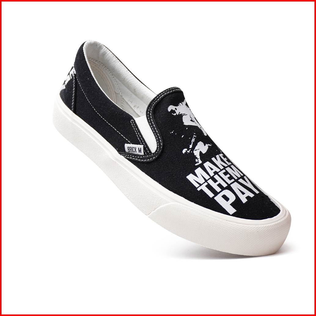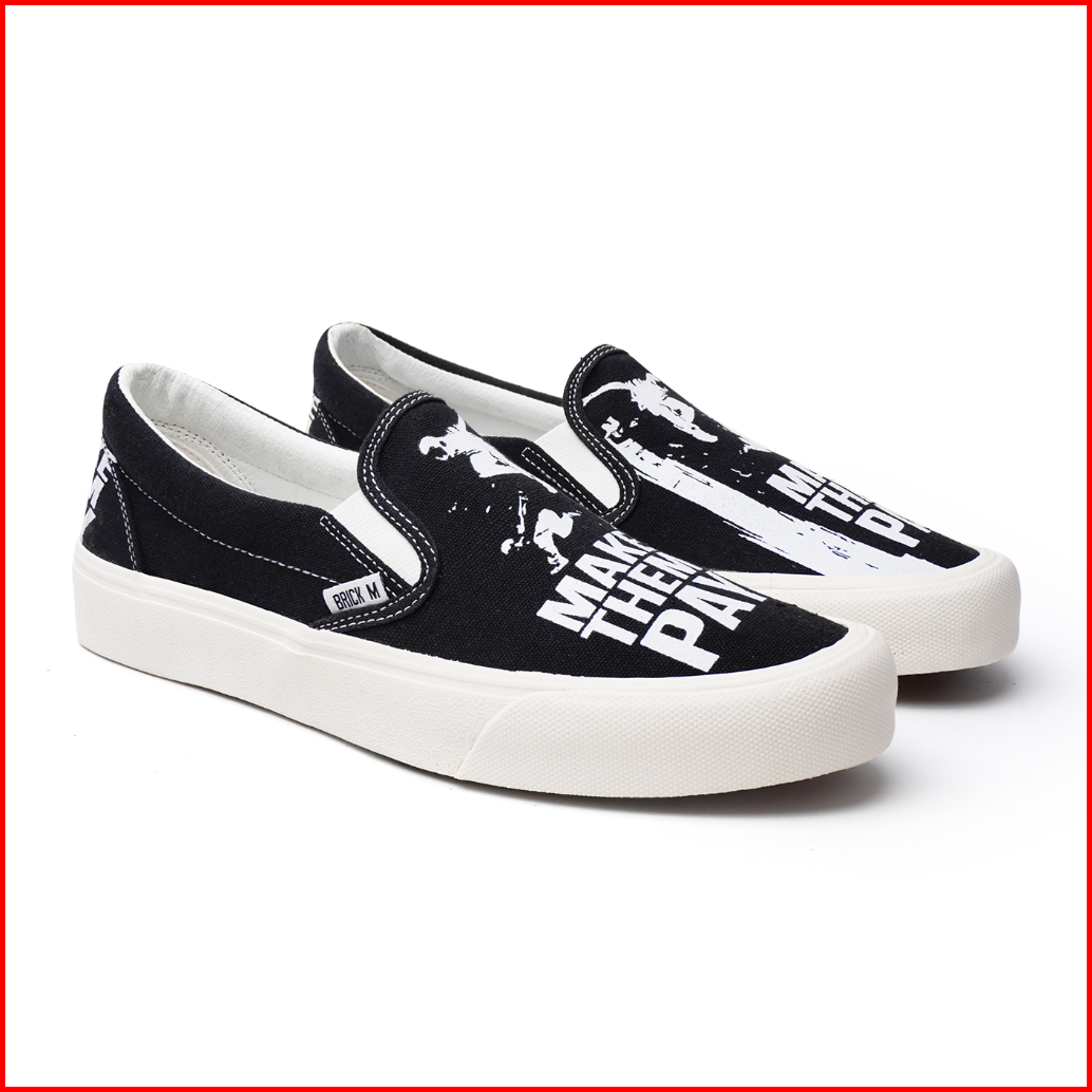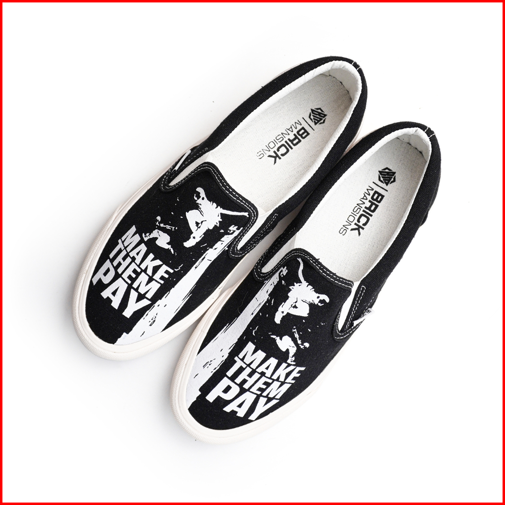 Brick Mansions - Mission Make Them Pay Black White Sepatu Slip On Sneakers Casual Pria Wanita