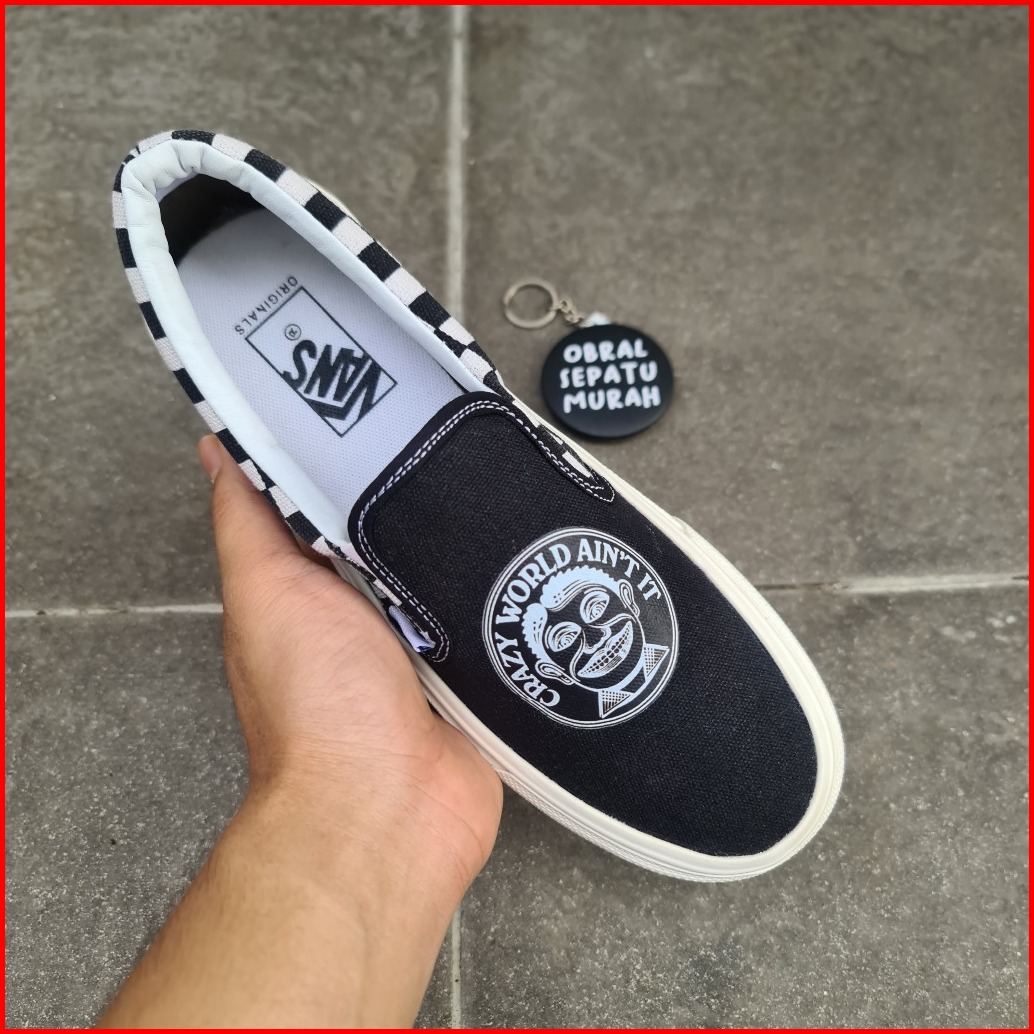 Obral Sepatu Slip On Vault Og Crazy World Hitam Putih Grade Original 36-43 Sepatu Selop Karakter