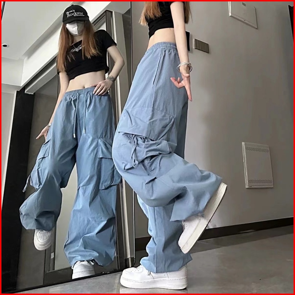 Gdtima Celana Cargo Wanita Highwaist Korean Style Loose Pants