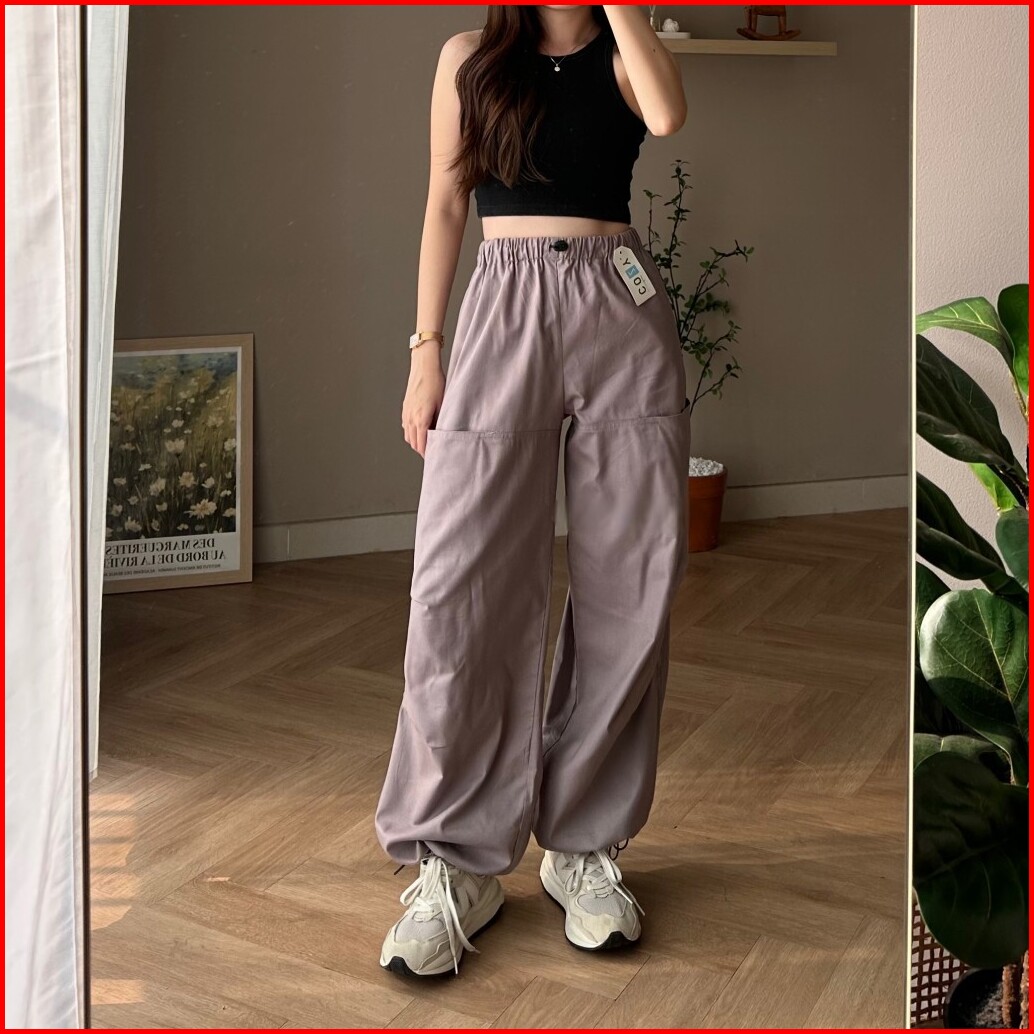 Jane Baggy Pants - Celana Kulot Jogger Cargo Serut Highwaist Chinos - Celana Kargo Wanita