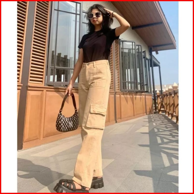 Celana Cargo Jeans Higwaist Cargo Pants Kargo Korean Style