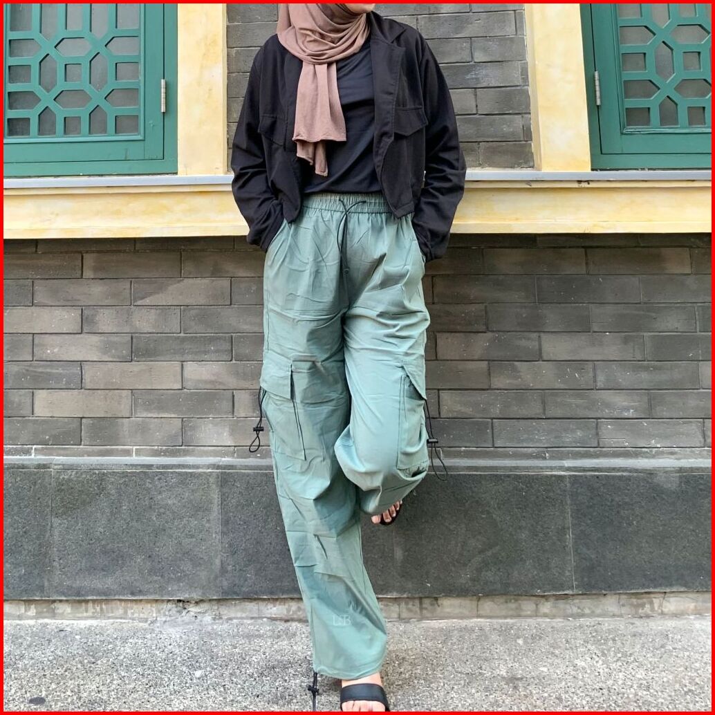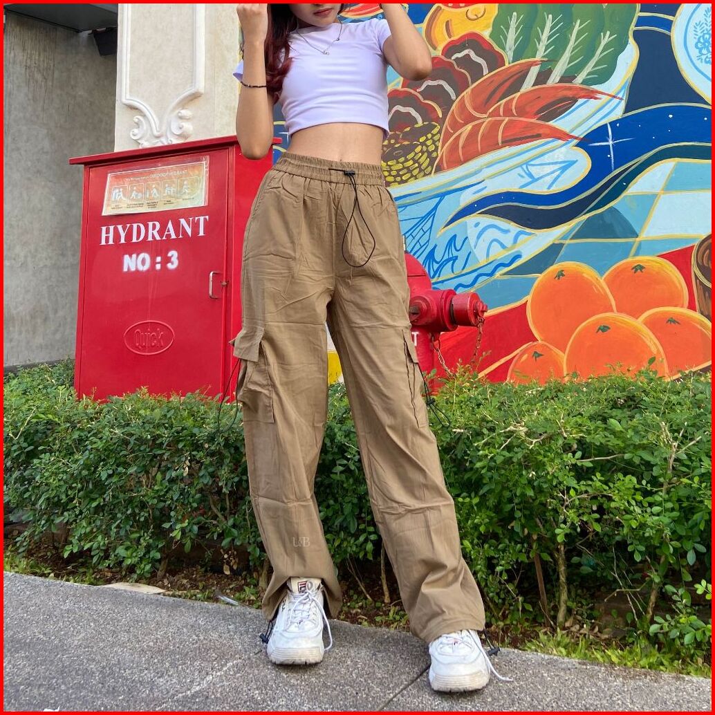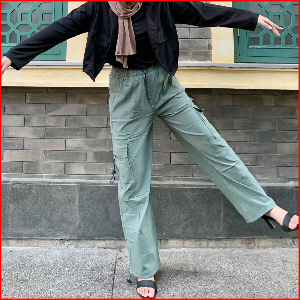 U B Outfit - 2009 Women S Cargo Pants Celana Panjang Wanita Highwaist Loose Parasut Stretchy