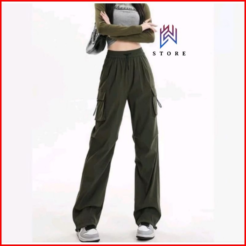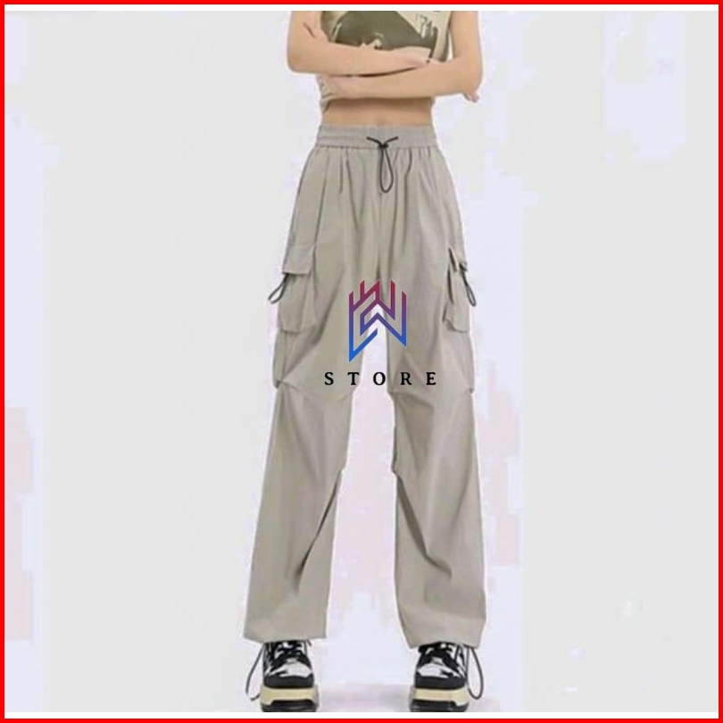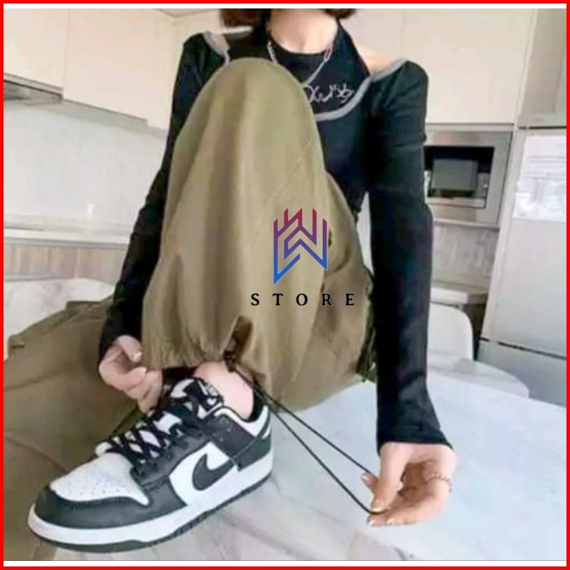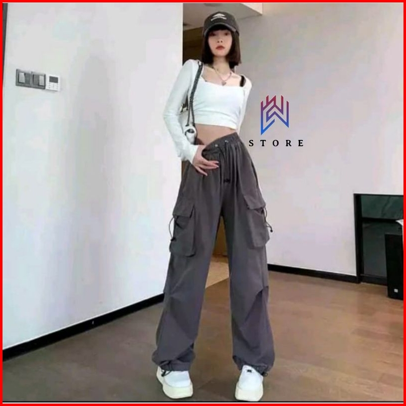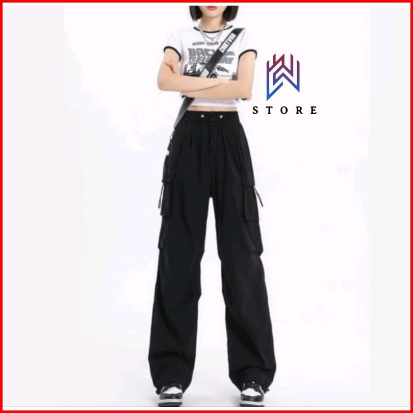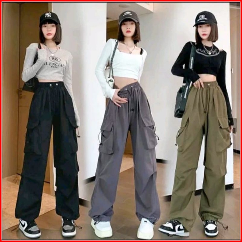 Celana Cargo Wanita Highwaist Loose Pants Cargo Korean Style-celana Cargo Jumbo