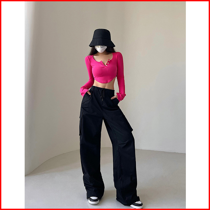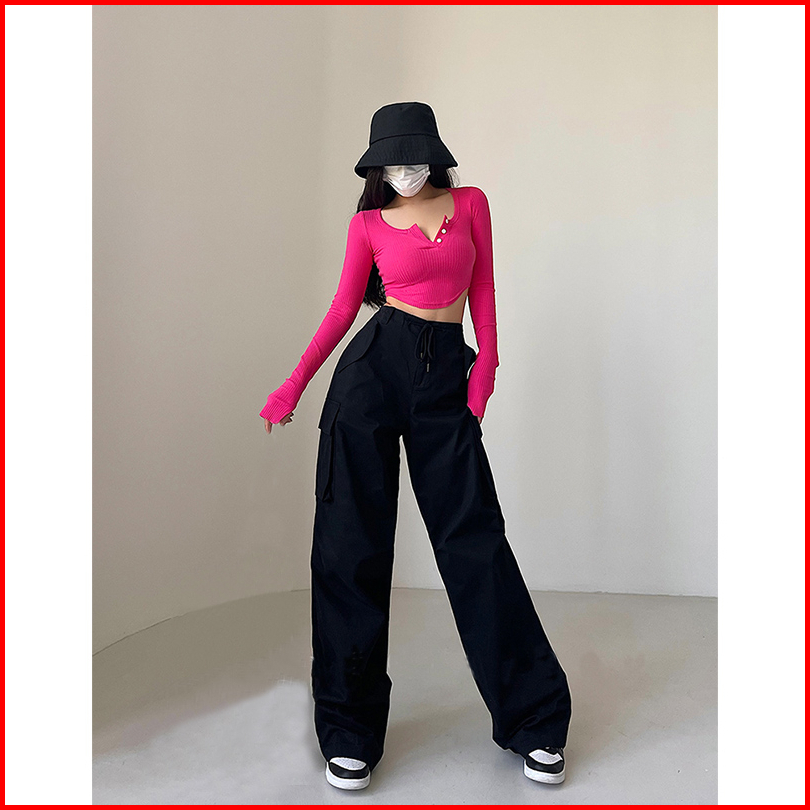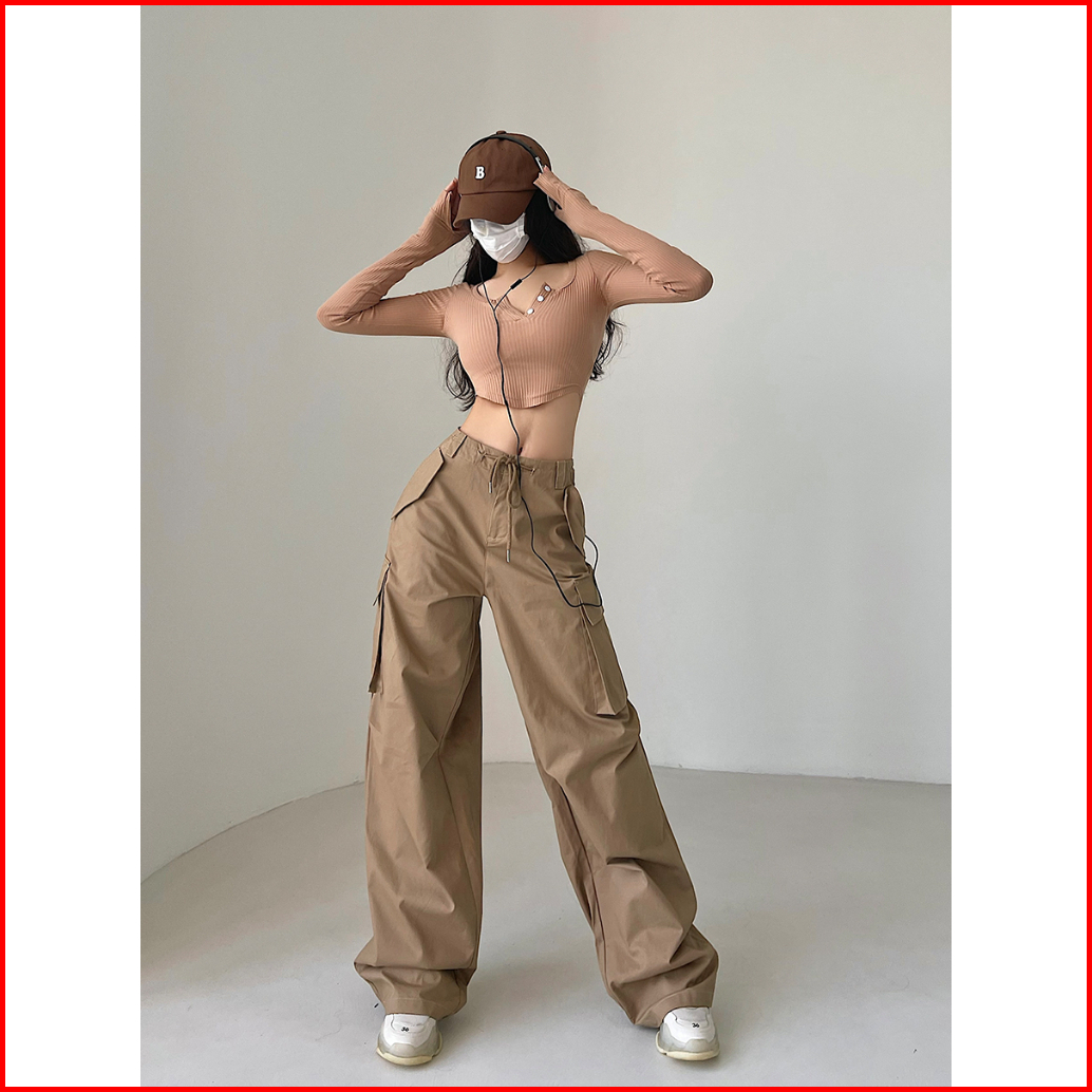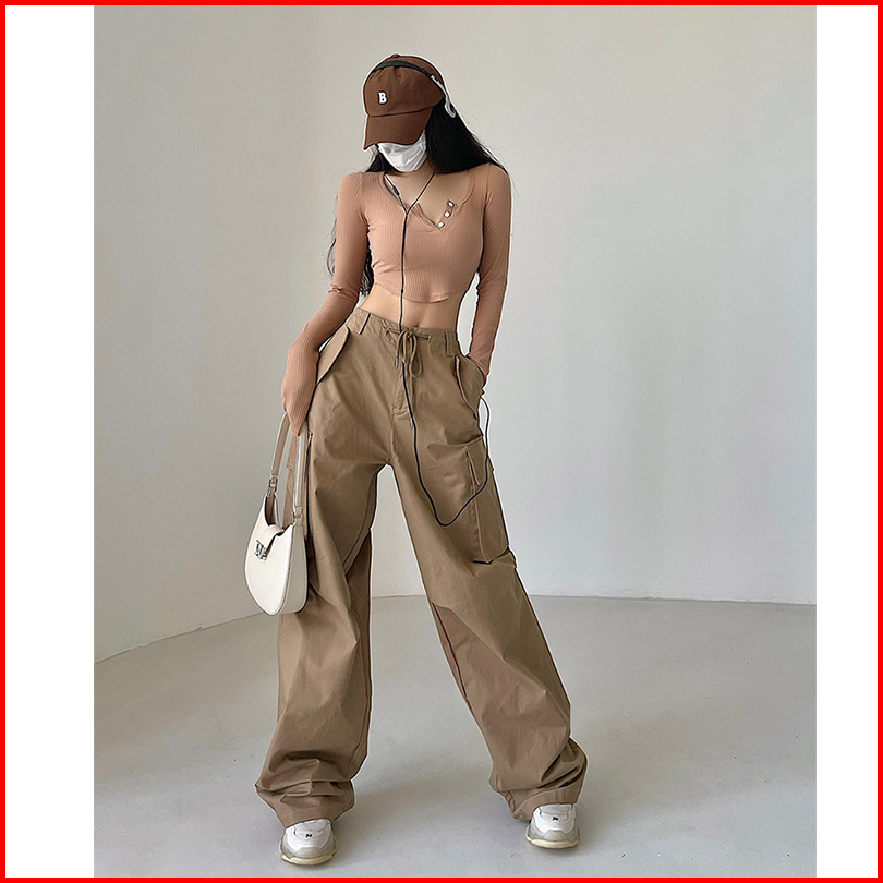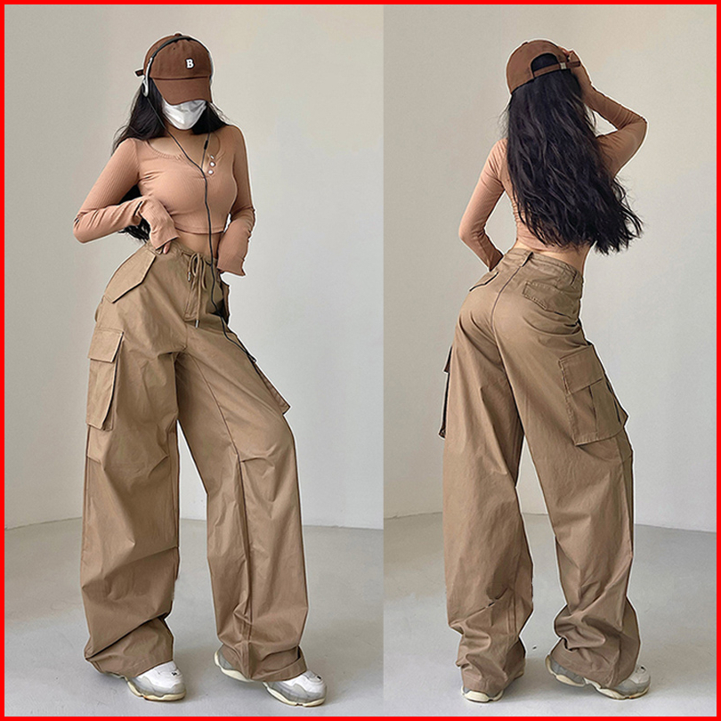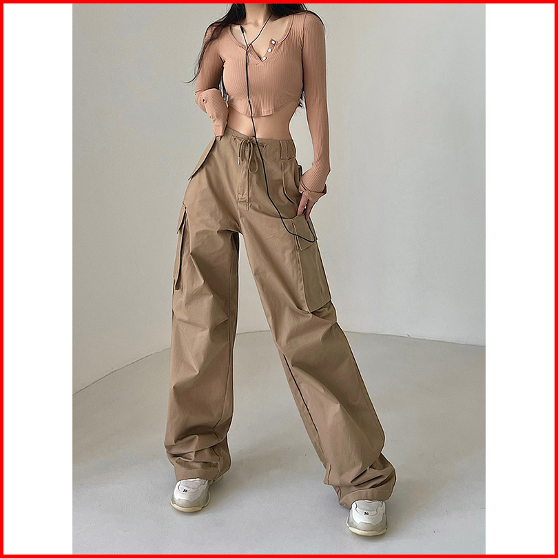 Celana Cargo Wanita Highwaist Vintage Loose Casual Straight Celana Kulot Premium Wanita Cargo Polos Panjang Wanita