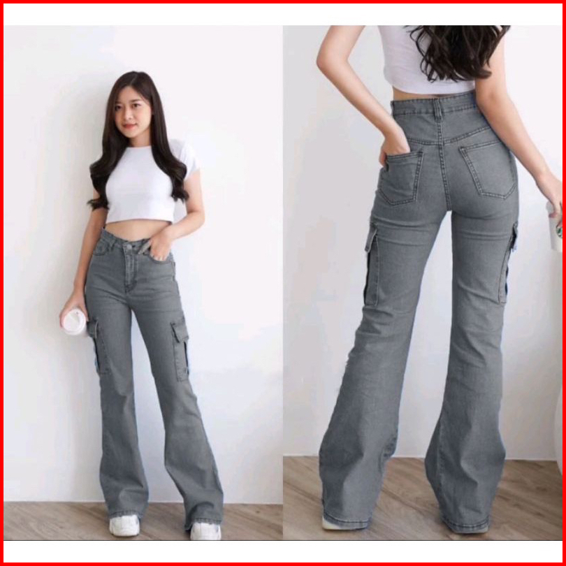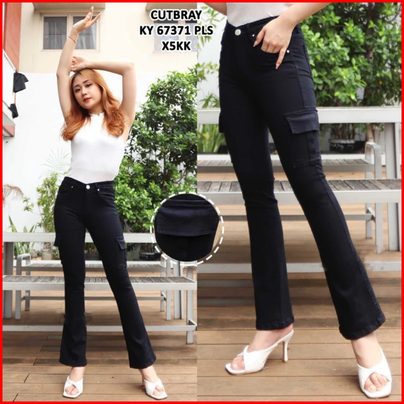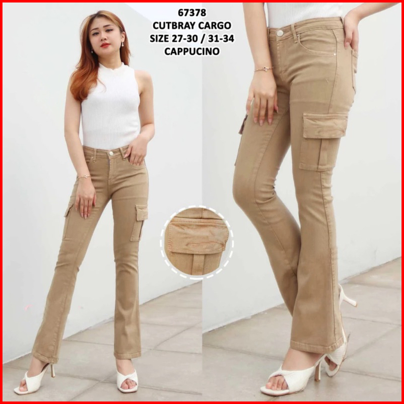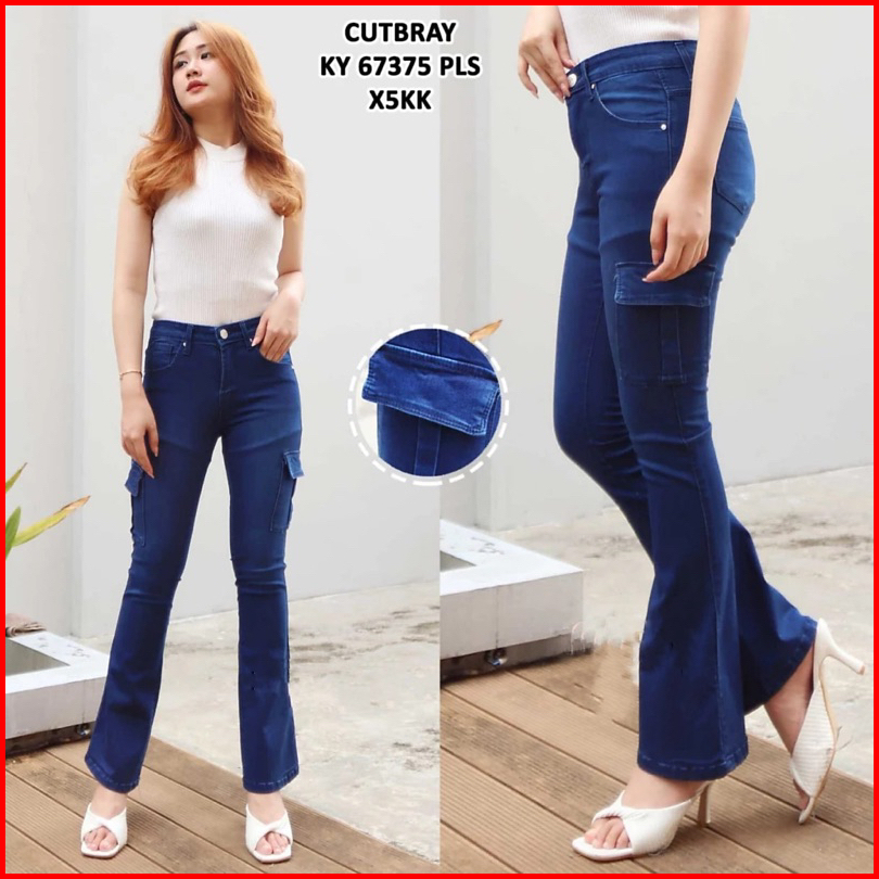 Celana Cargo Cutbray Highwaist Stretch Jeans Jumbo Big Size 27-42