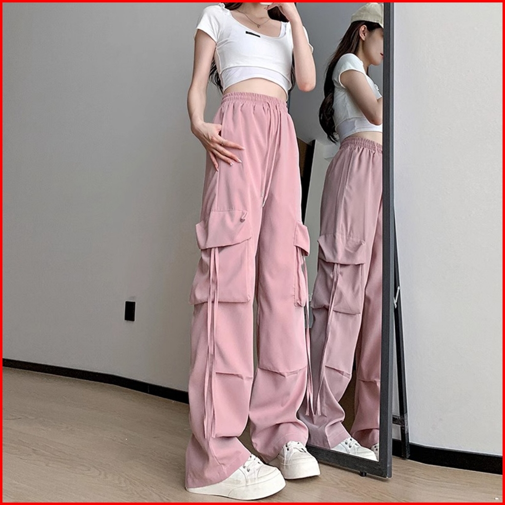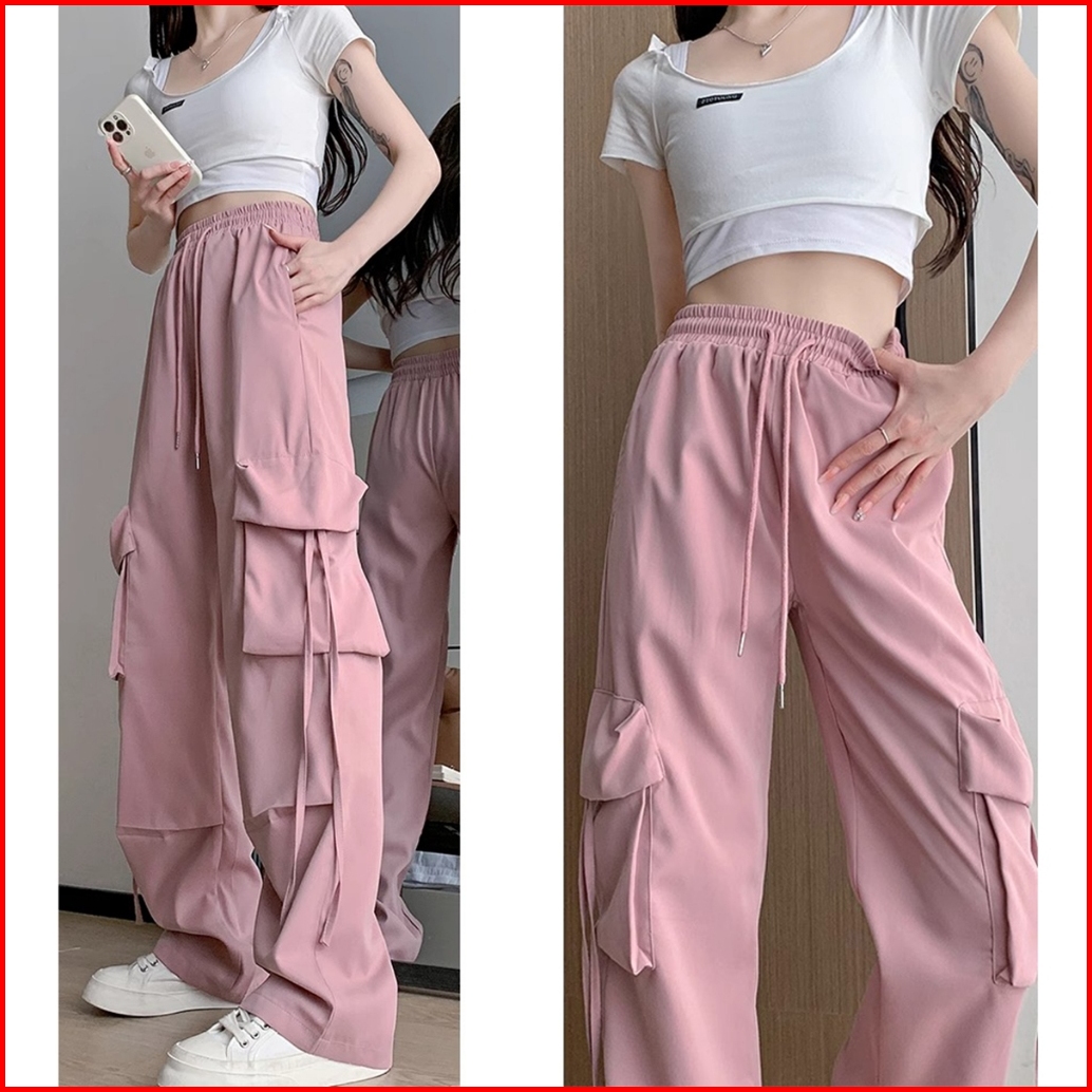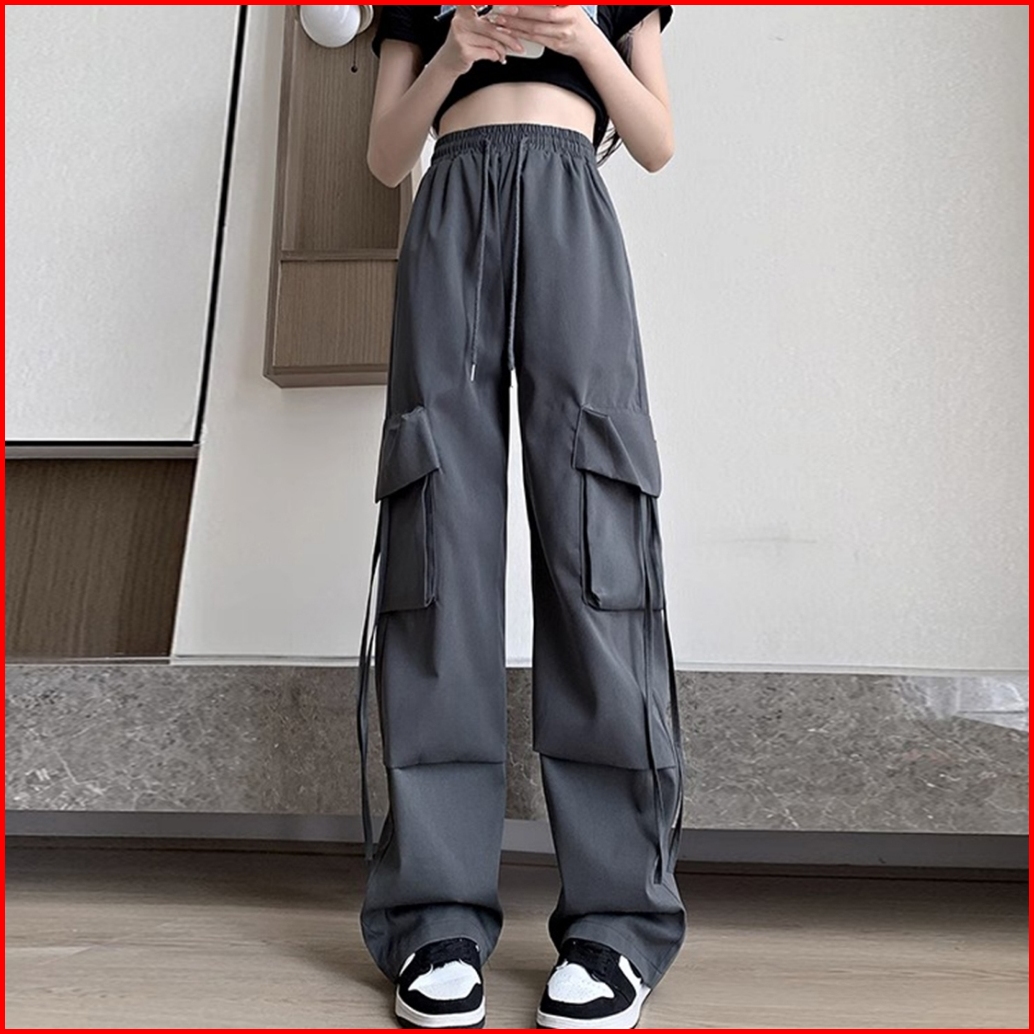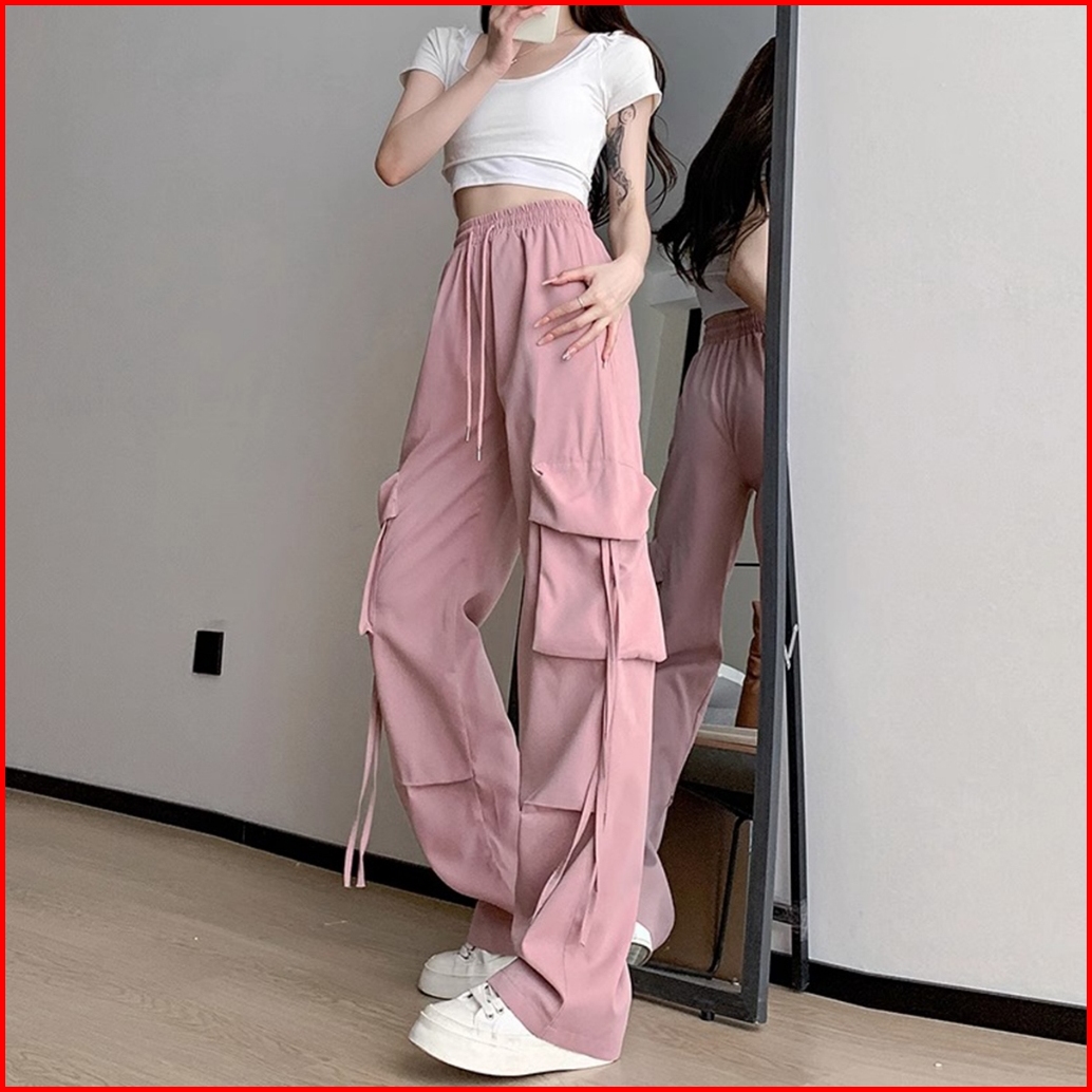 Celana Kargo Serut Baru Gaya Korea - Celana Kargo Wanita Kantong Besar Pinggang Elastis - Celana Olahraga Dan Kasual Mur
