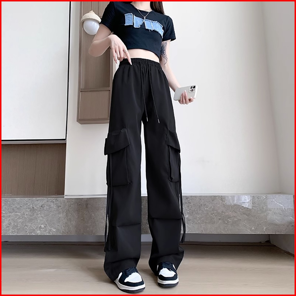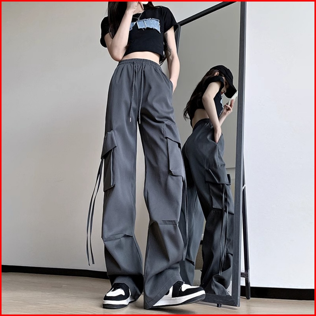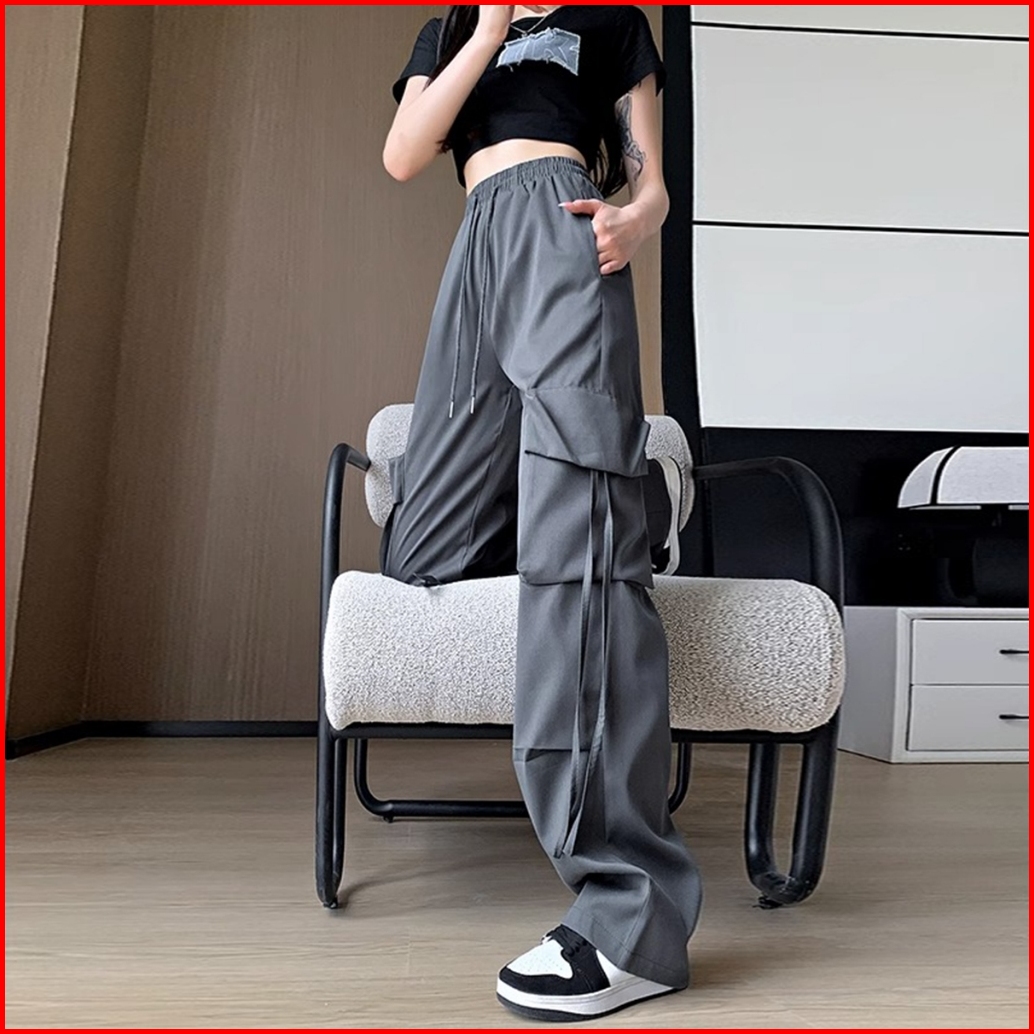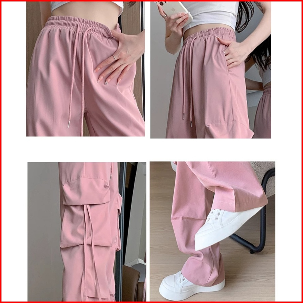 Celana Kargo Serut Baru Gaya Korea - Celana Kargo Wanita Kantong Besar Pinggang Elastis - Celana Olahraga Dan Kasual Mur