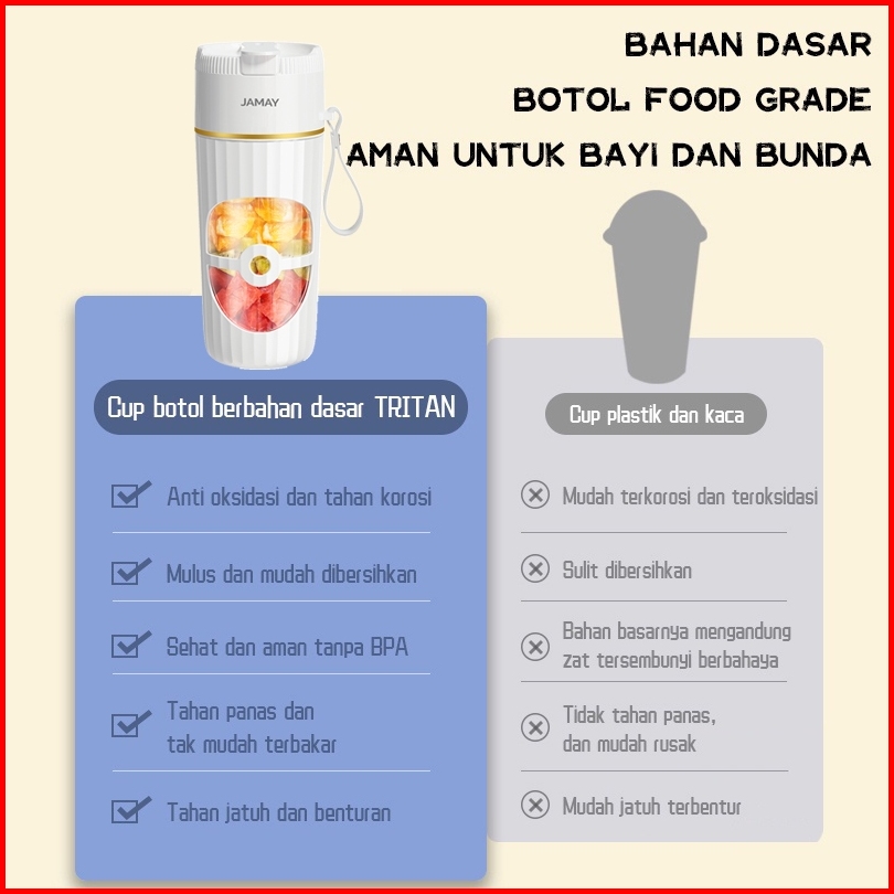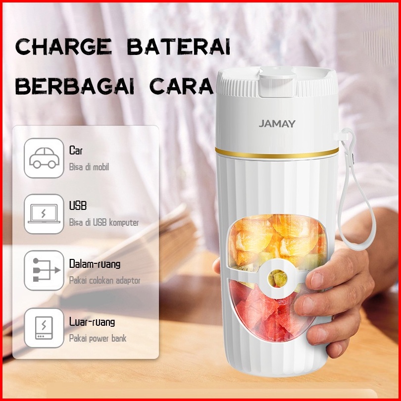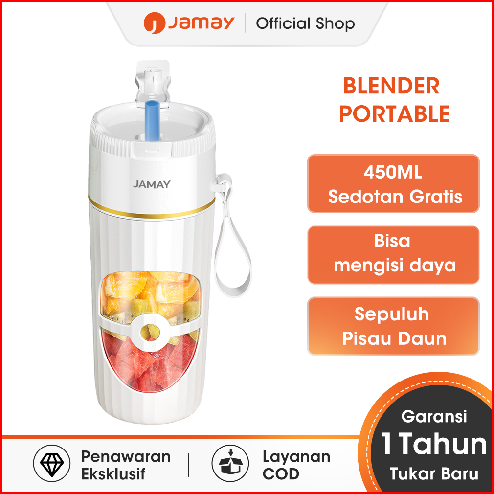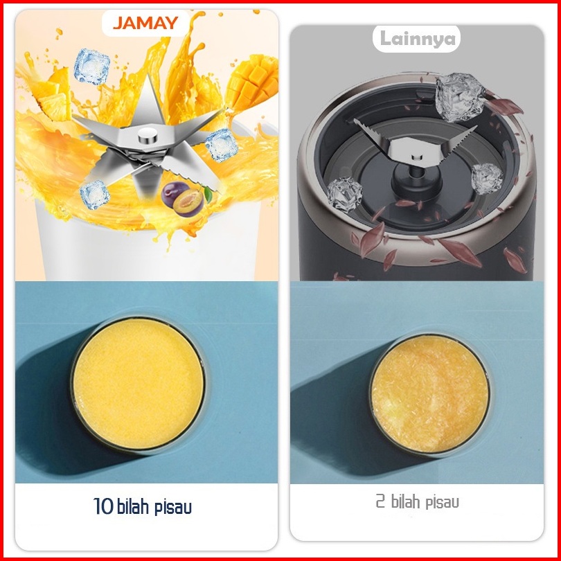 Jamay Blender Portable 450ml Mini Juicer Multifungsi 10 Mata Pisau Kaca Menebal Cangkir Usb Pembuat Jus Elektrik Recharg
