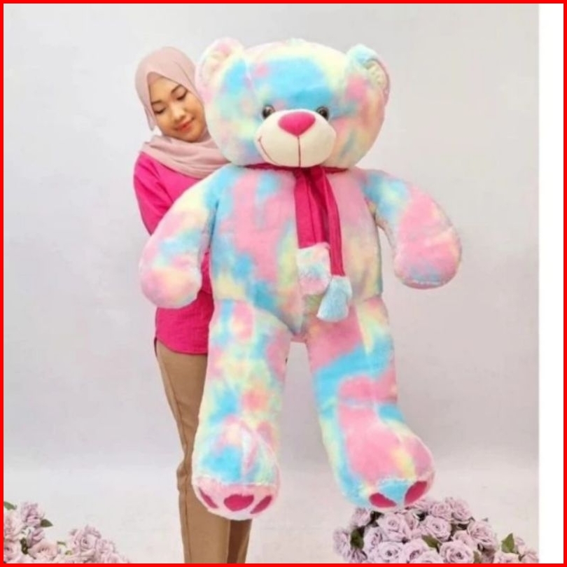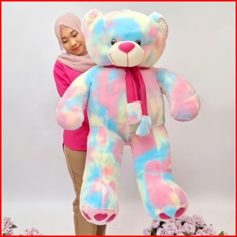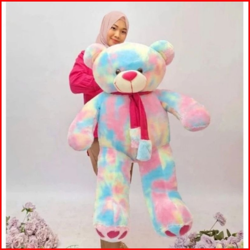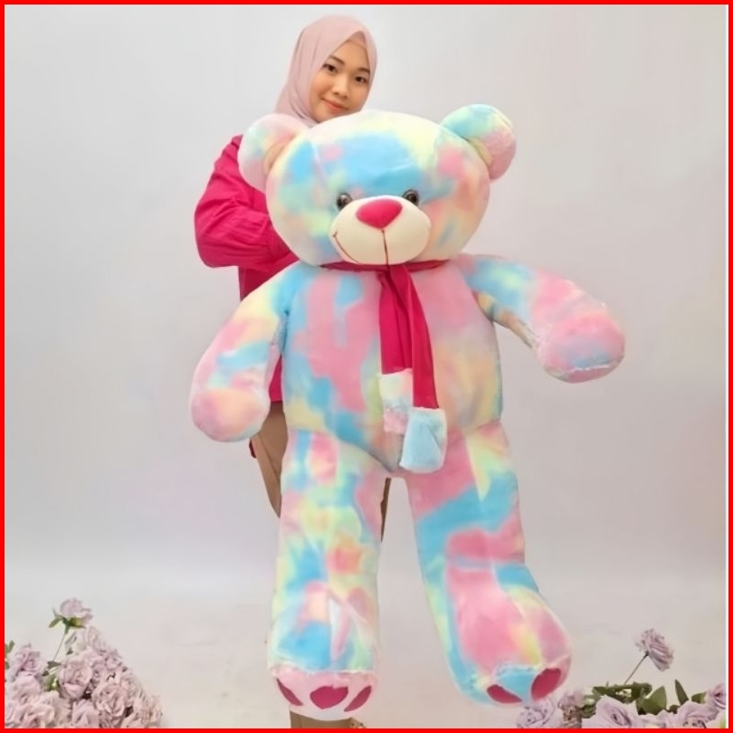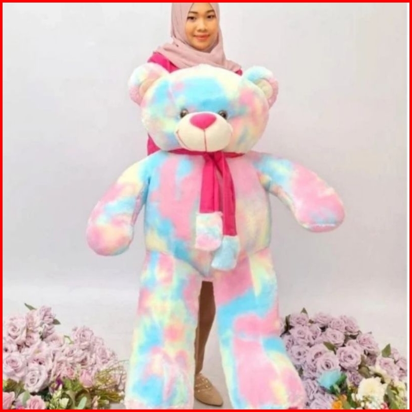 Boneka Teddy Bear Syal Telapak Jumbo Pelangi Rainbow