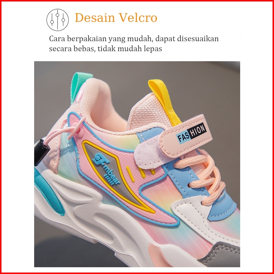 Sepatu Sneakers Anak Perempuan Import Cantik Fashion New Sepatu Sekolah Anak Ungu Merah Muda Usia 3-10 Tahun