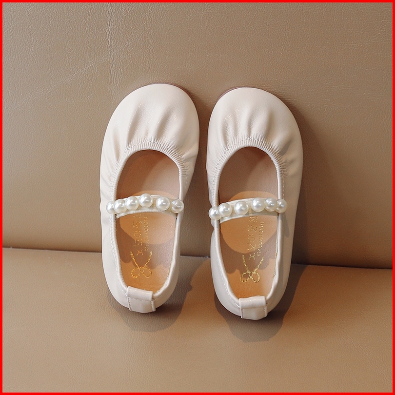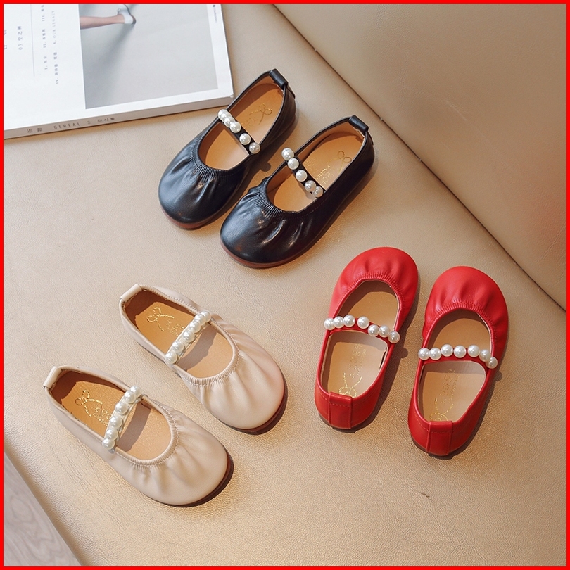 Sepatu Flat Kulit Lembut Bayi Perempuan Warna Polos Sepatu Anak Slip On Mutiara Sol Lembut Sederhana Ukuran 21-36