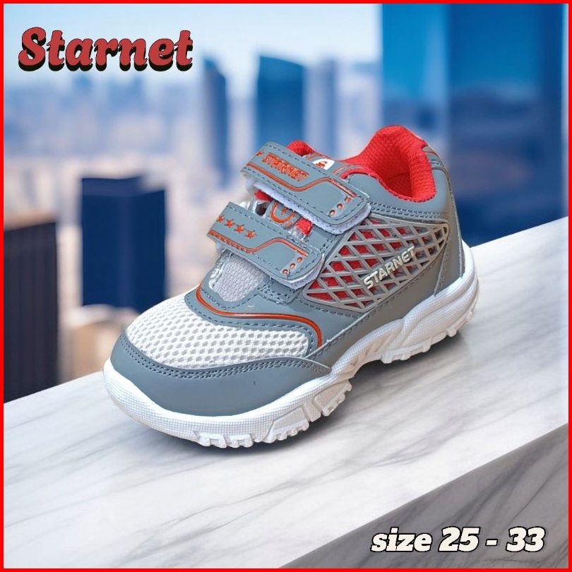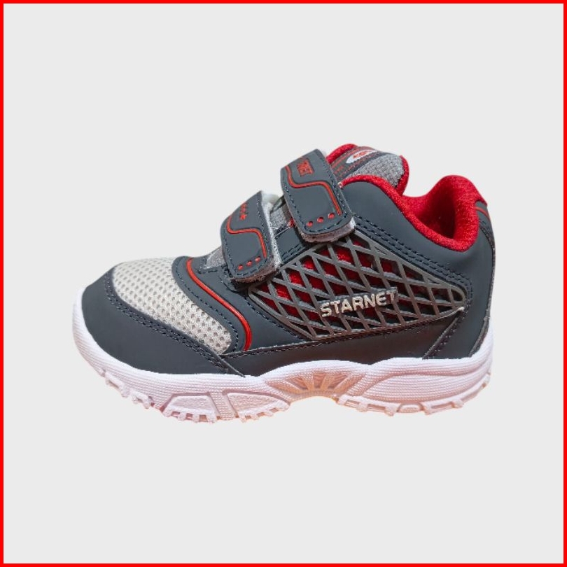 Sepatu Anak 1 - 8 Tahun Laki Perempuan Starnet Size 25-33 Balita Tk Sd Paud Cewek Cowok Grey Red Merah