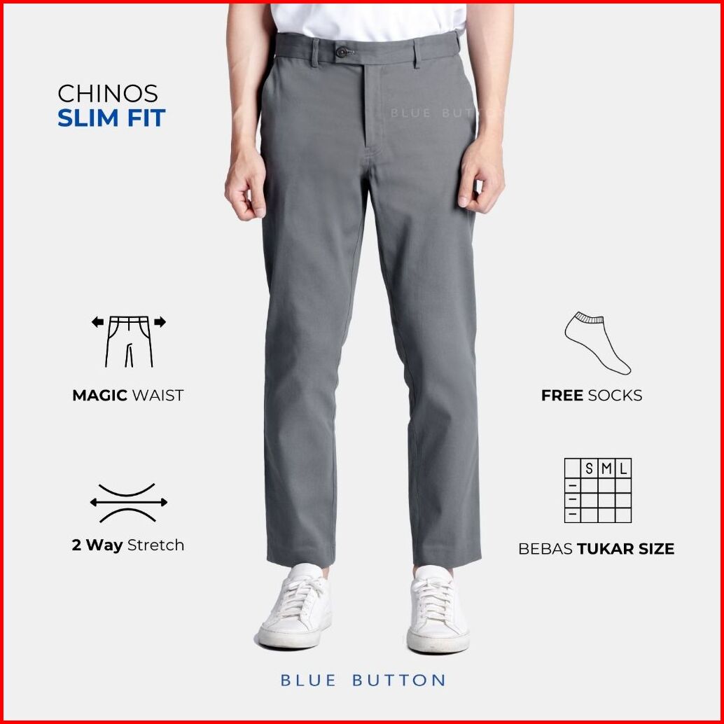 Bluebutton Celana Chino Celana Ankle Pants Slim Fit Light Grey