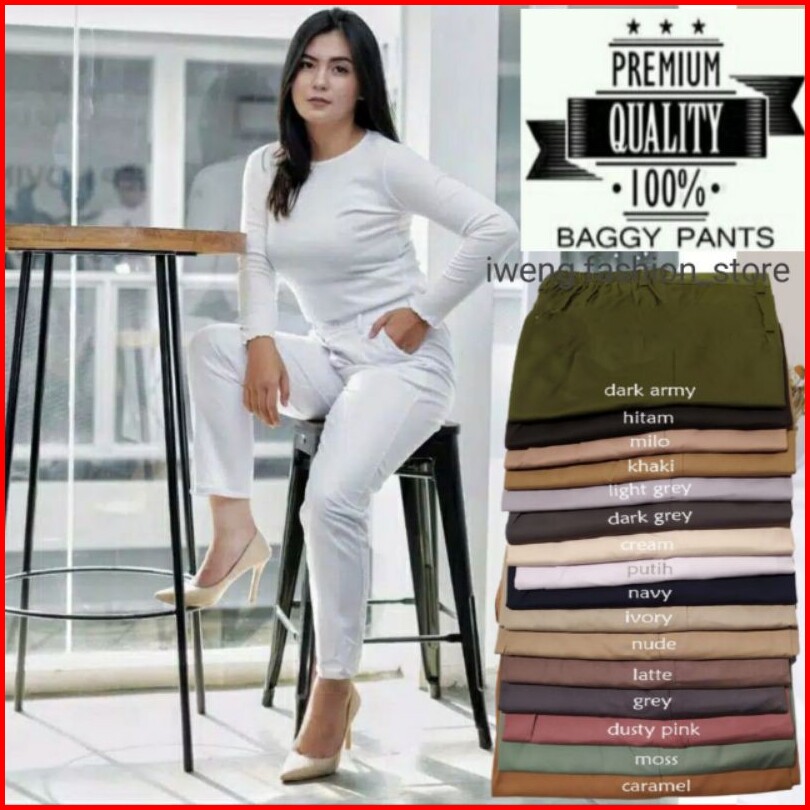 KHAKI, PUTIH, IVORY, HITAM, DARK GREY, MILO, NAVY, CREEM, NUDE, MOOS, LATTE, MOCCA/COKLAT, LIGHT GREY, DARK ARMY, DUSTY PINK