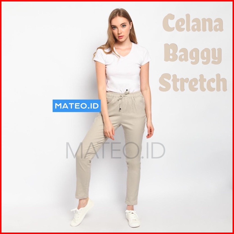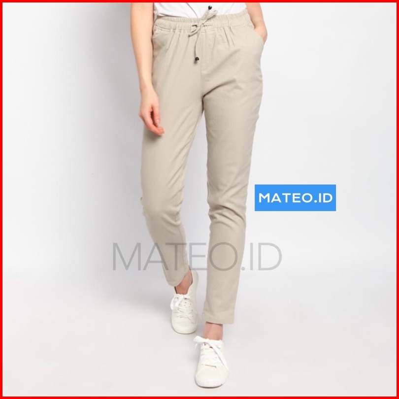 Celana Chino Wanita Pinggang Karet - Celana Bahan Katun Twill Stretch Melar
