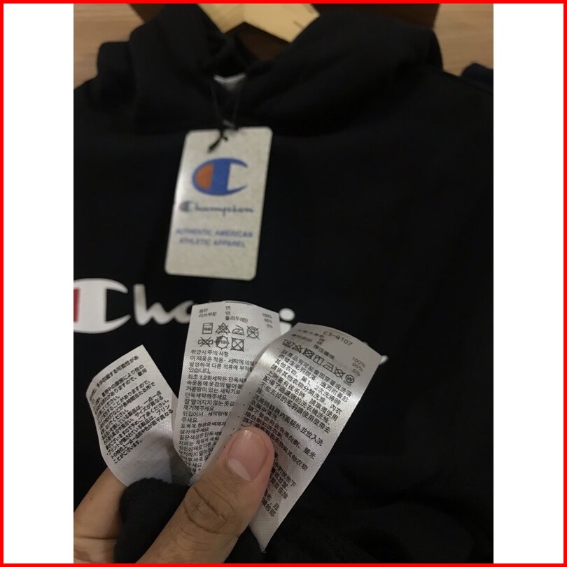 100 Original Cmt Hoodie Ch Mpion Script Logo Black Full Tag