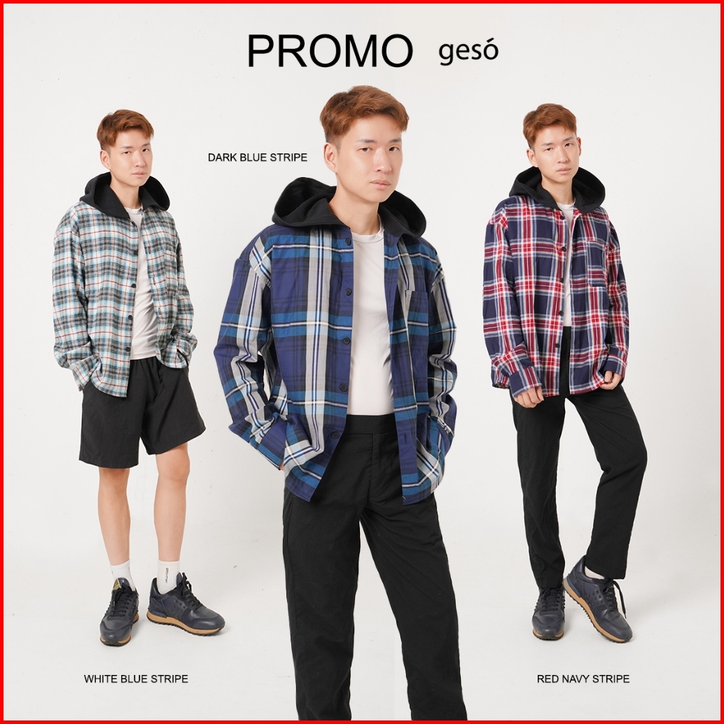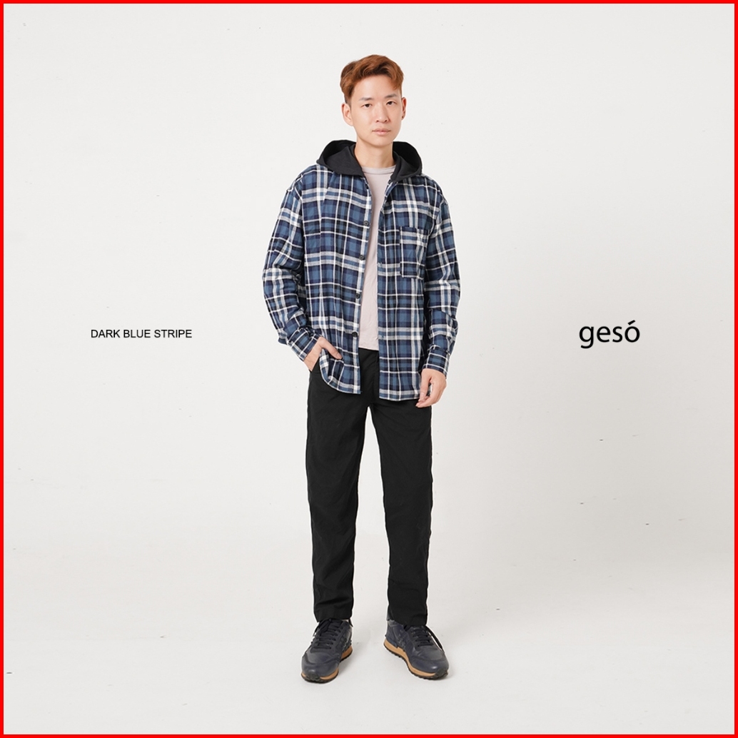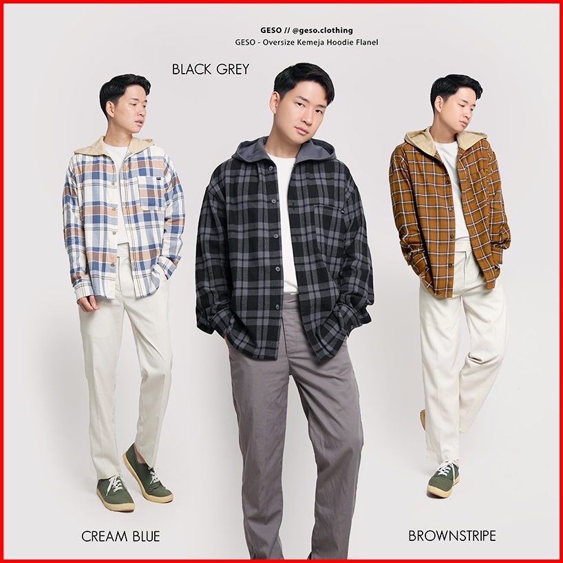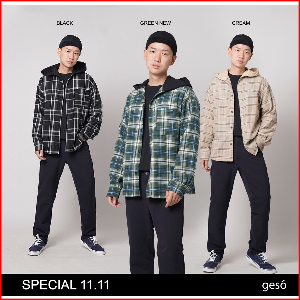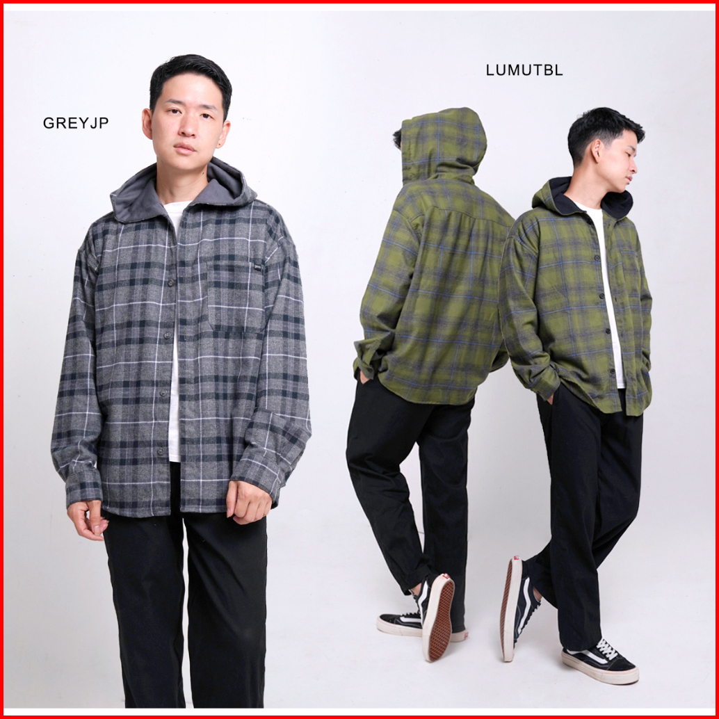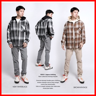 Geso - Oversize Kemeja Hoodie Flanel Kotak-kotak