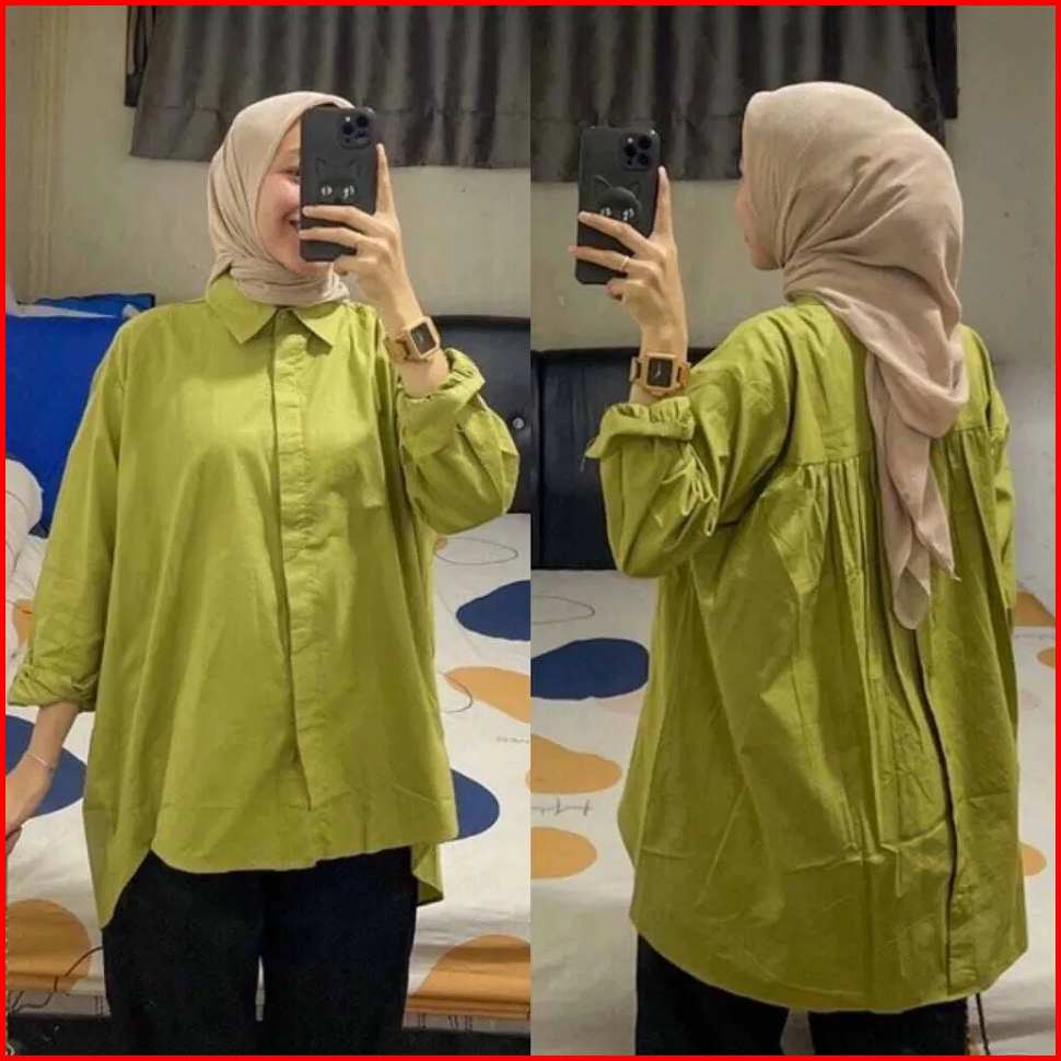Rika Top Kemeja Wanita Linen Kancing Belakang Atasan Wanita Jumbo Terbaru