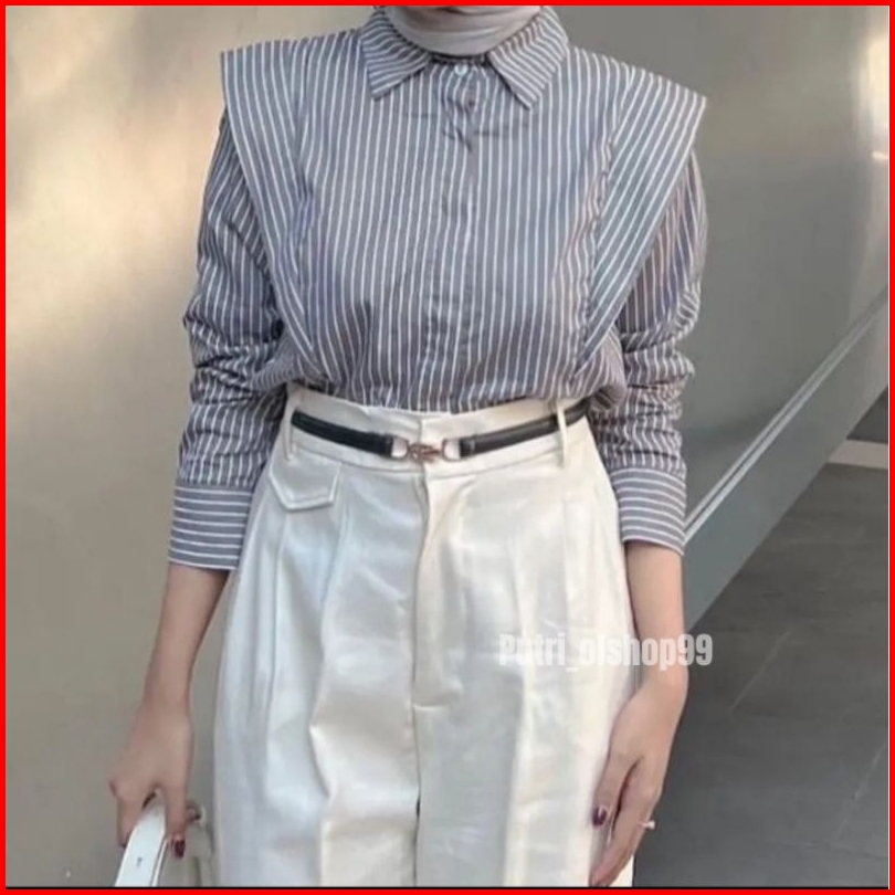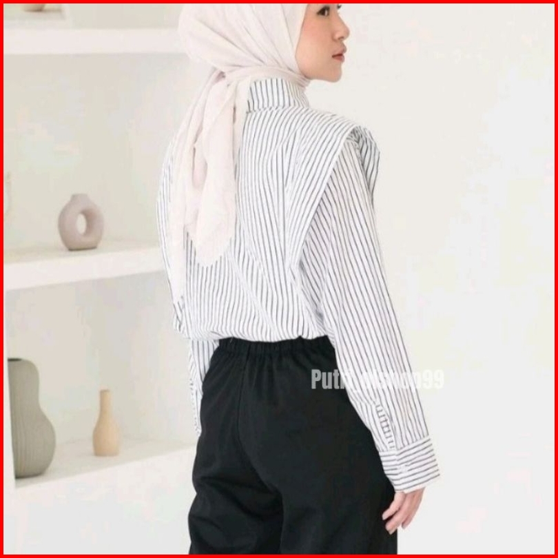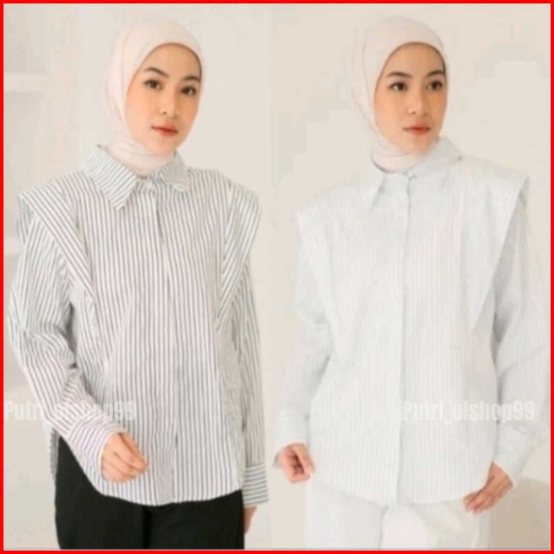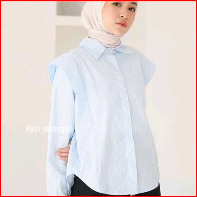 Vella Shirt Kemeja Wanita Atasan Wanita Atasan Stripes By Putri Olshop99