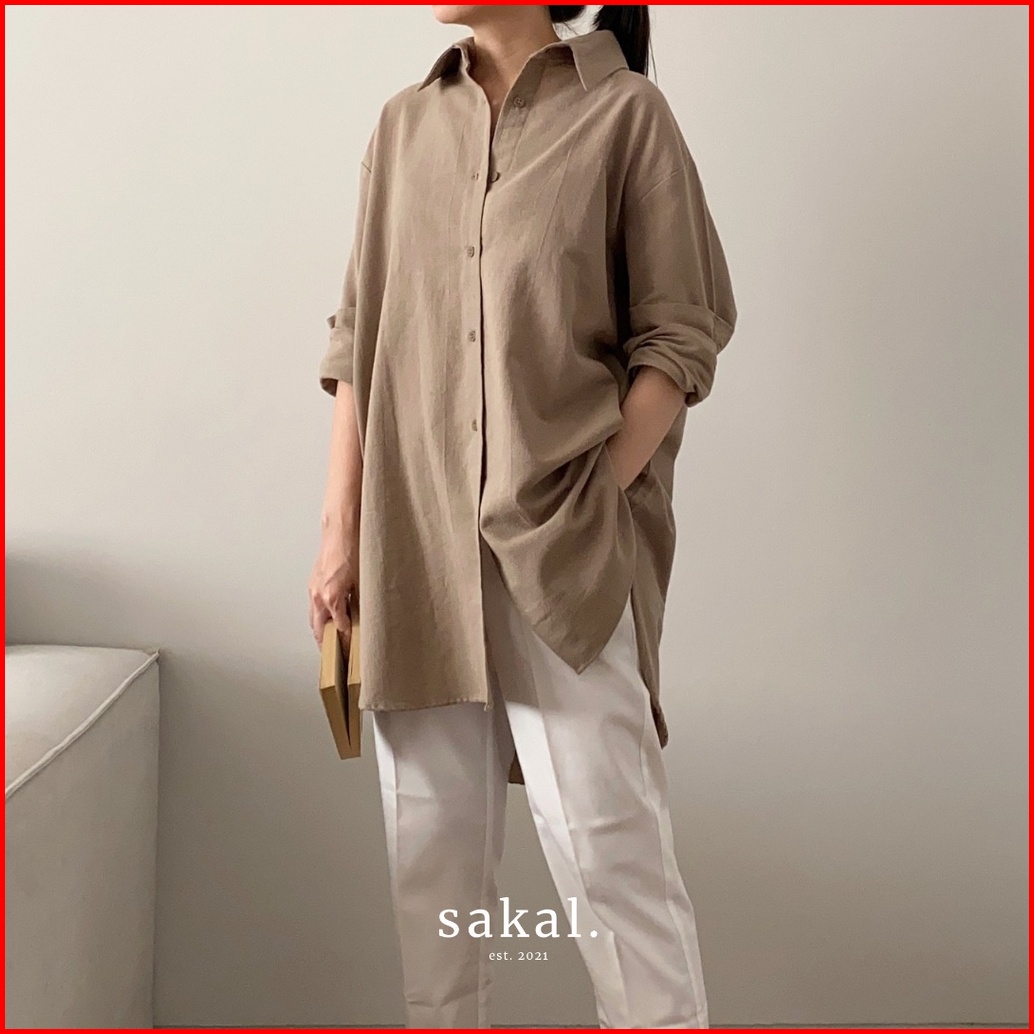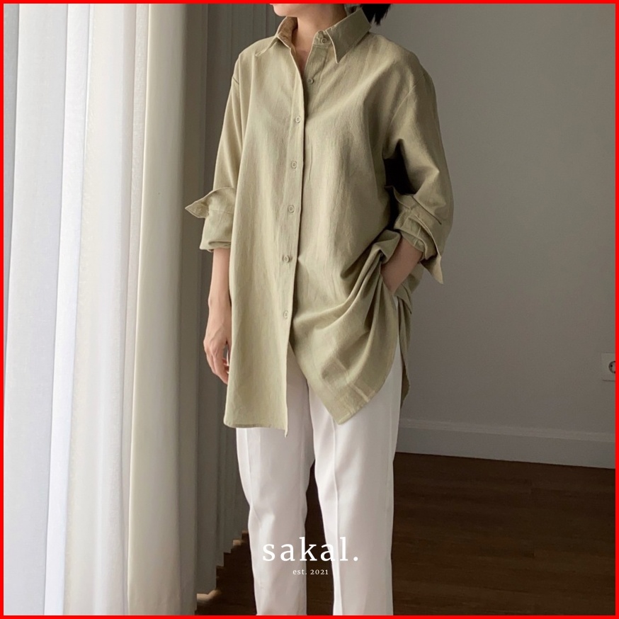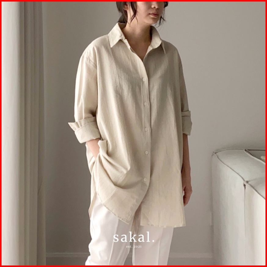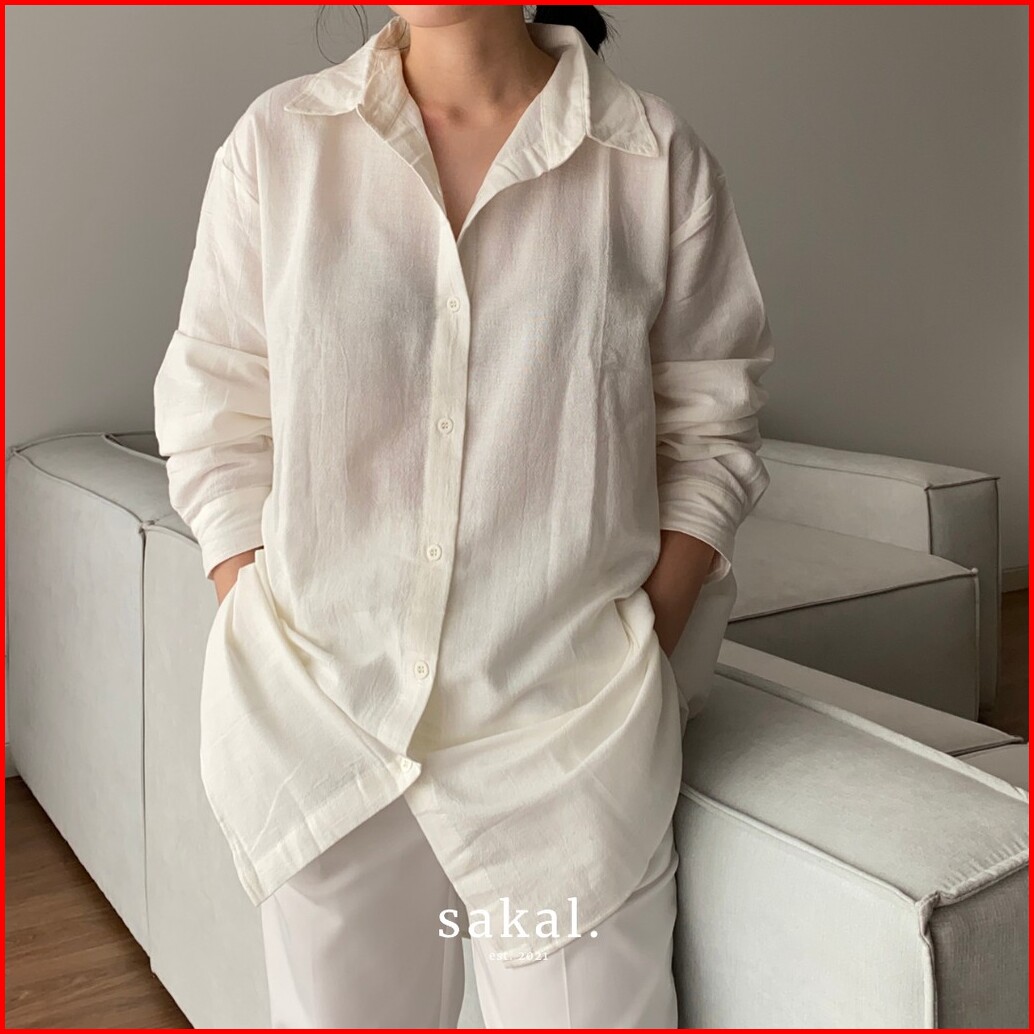 Sakal Kemeja Linen Wanita Putih Ld 112cm
