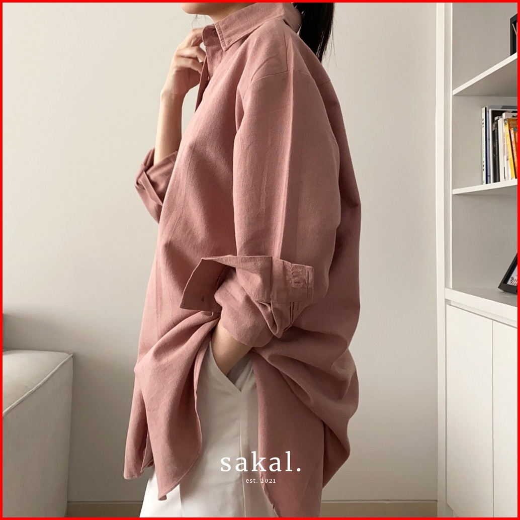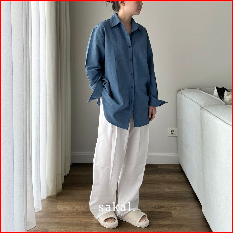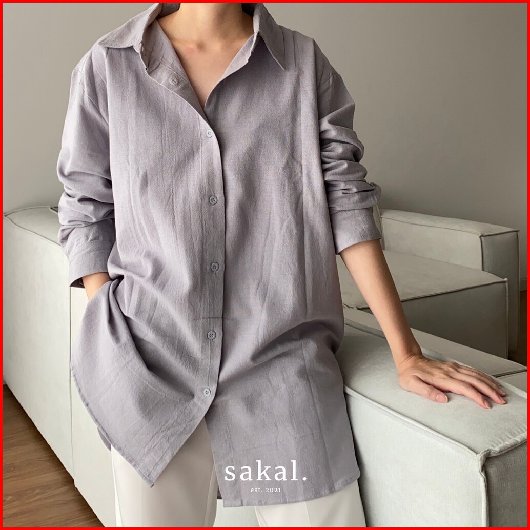Sakal Kemeja Linen Wanita Putih Ld 112cm