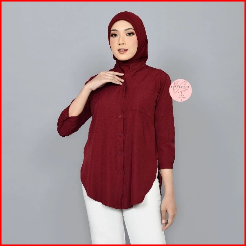 Brandstore - Kemeja Shakila Botega Jumbo Standart Atasan Tunik Wanita Polos Kasual Kantor Basic Top