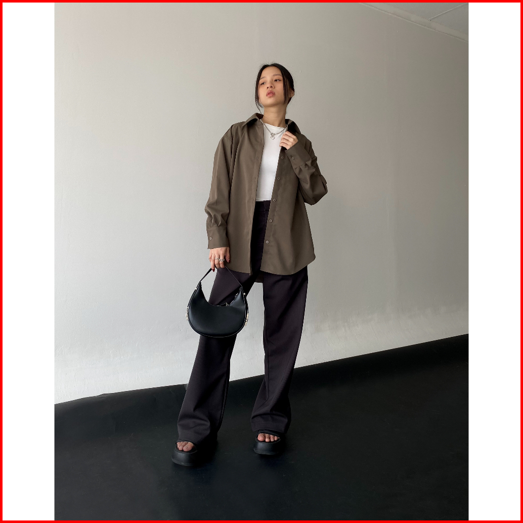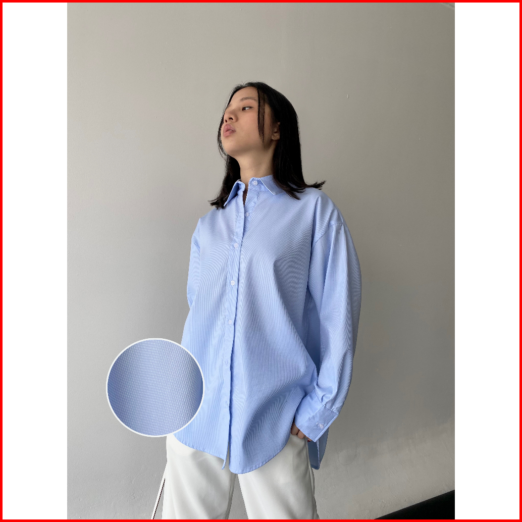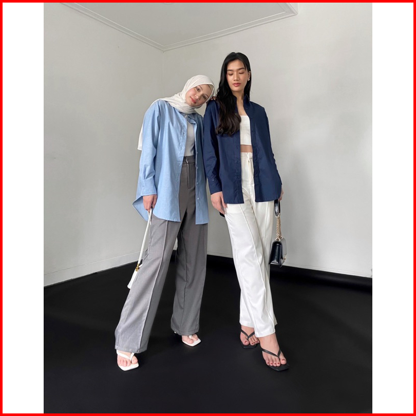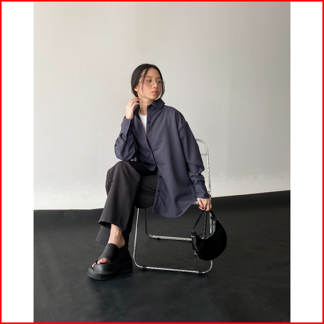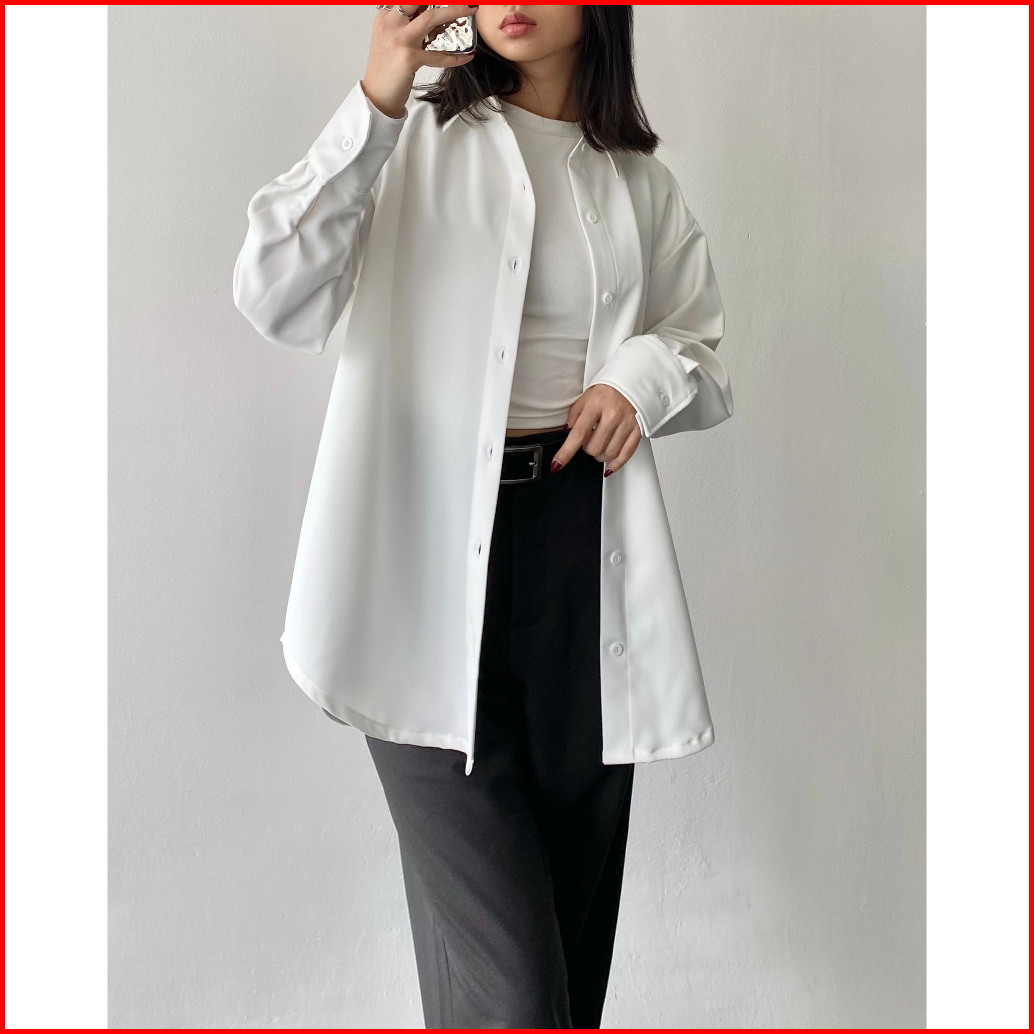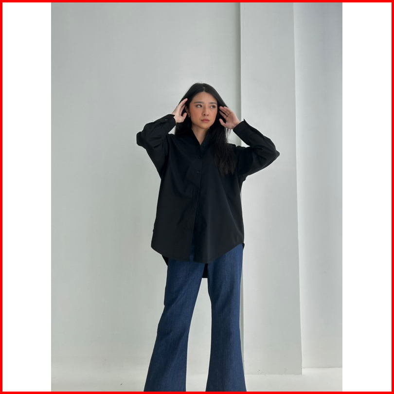 Boyfriend Shirt Oversized Shirt Kemeja Oversize Premium Katun Wool Atasan Wanita Lengan Panjang Baju Basic - Casual - Se