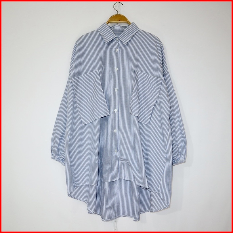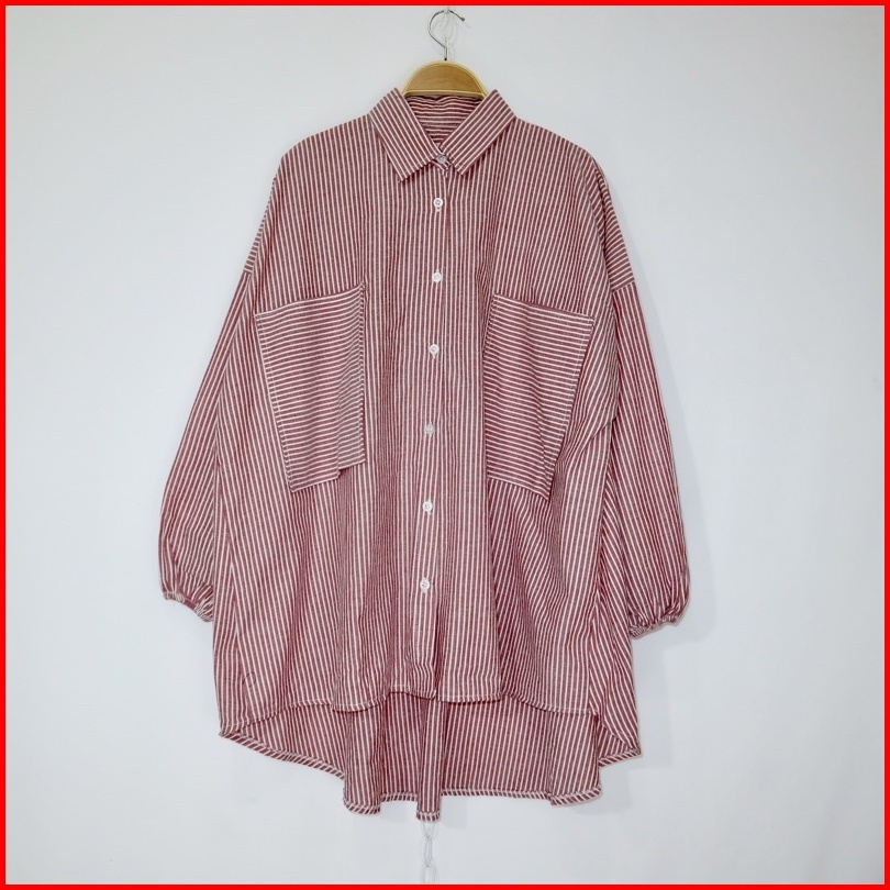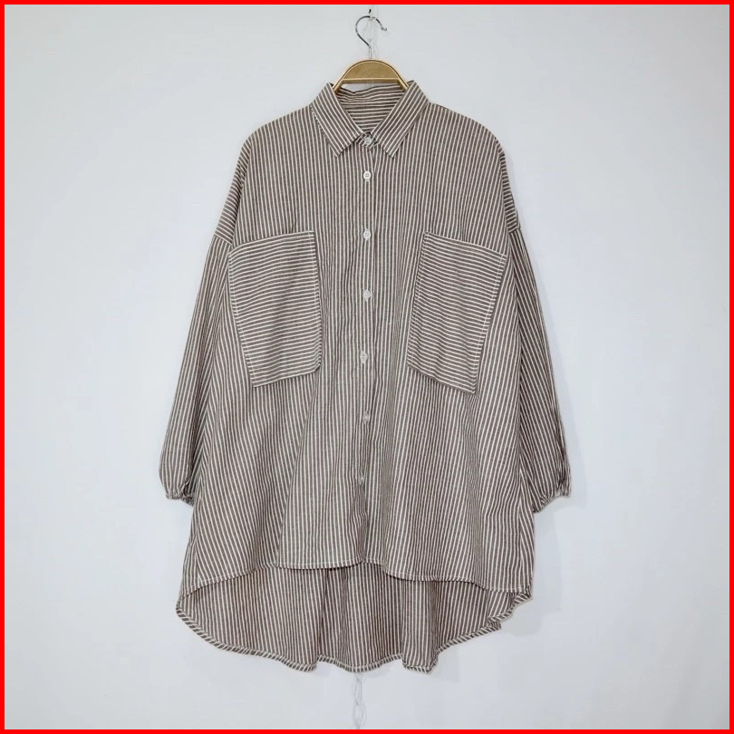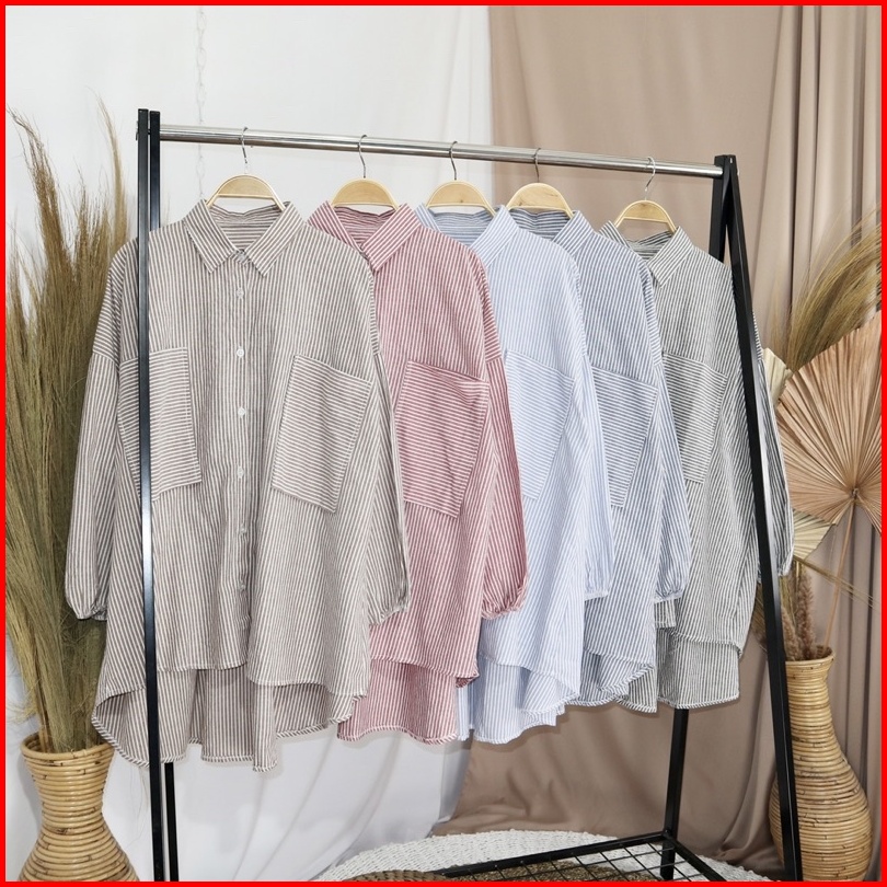 Kara.id Yolla Shirt Oversize Wanita Salur - Kemeja Wanita Lengan Panjang - Stripe Shirt Big Size