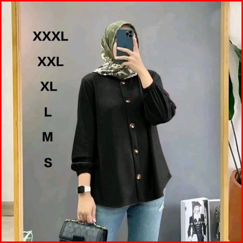 Baju Kemeja Wanita Lengan Karet Bahan Airflow Kemeja Kekinian Kemeja Blouse