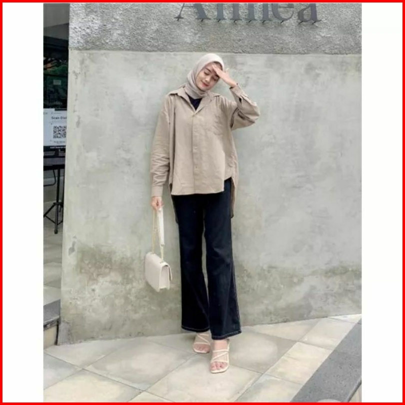 Kemeja Wanita Oversize Linen Olivia Shirt Linen Pocket Oversize