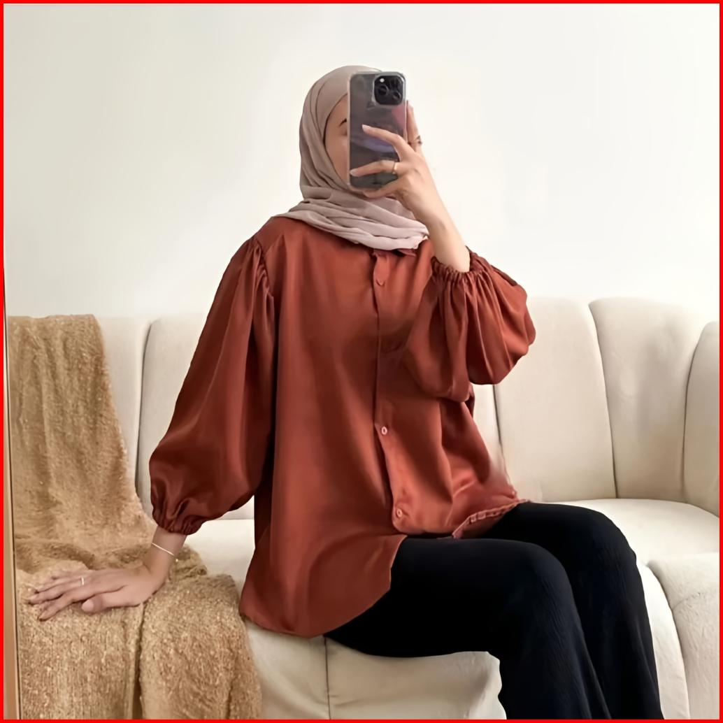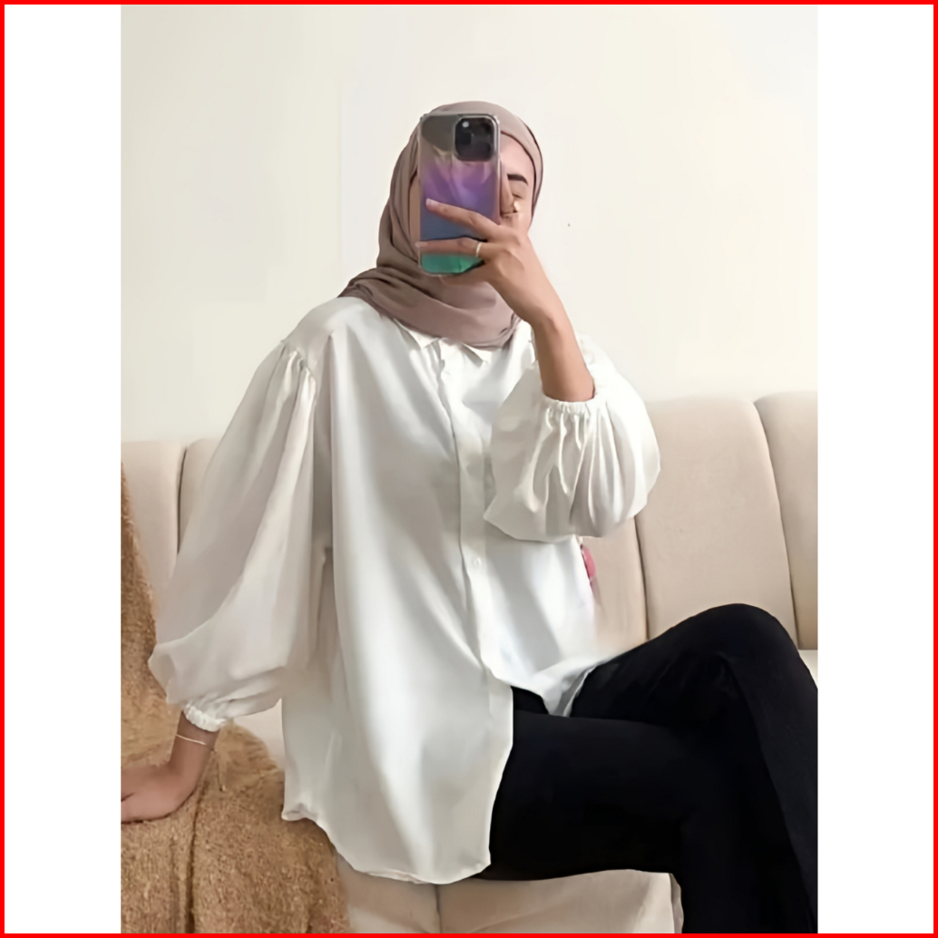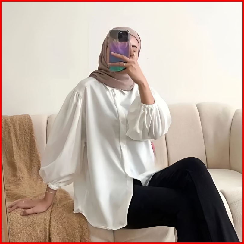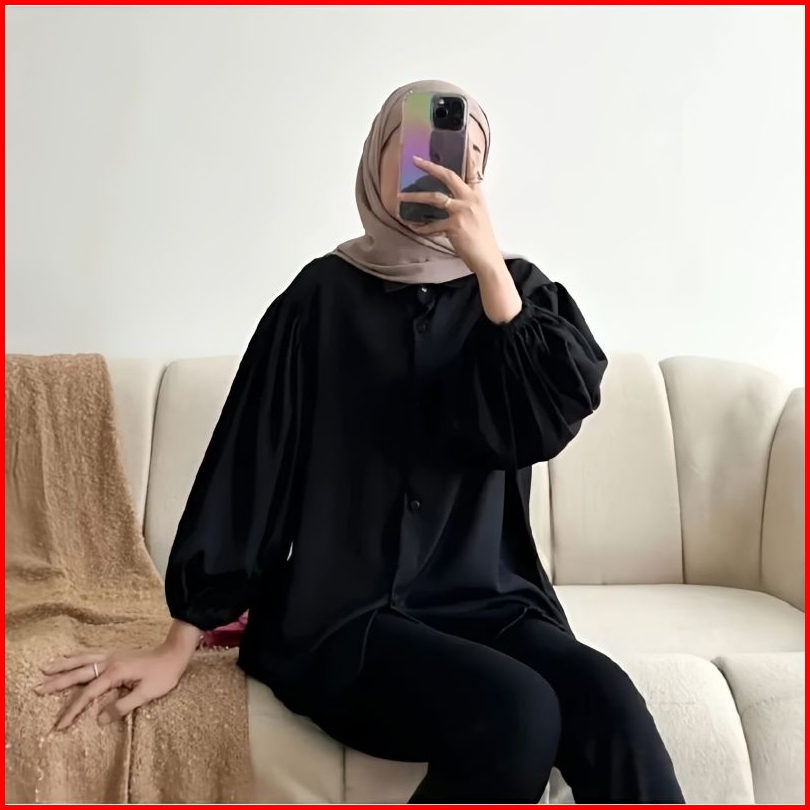 Zea Blouse Syakila Kemeja Polos Wanita Tangan Puffy Panjang 3 4 Ukuran Jumbo S M L Xl Xxl 3xl 5xl