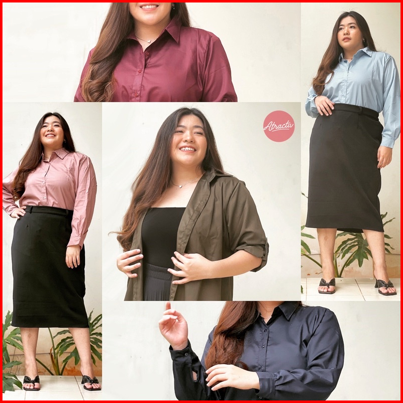 Atractiv Kemeja Kantor Anti Lecek Jumbo Wanita Ld120 130 135 142 Kemeja Anti Kusut Lengan Panjang