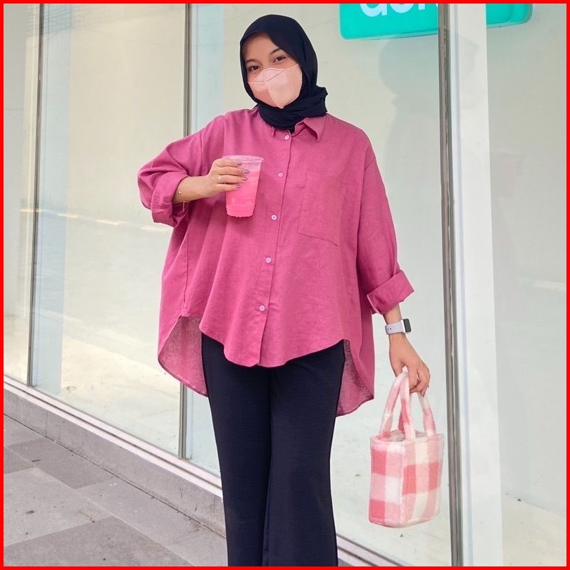 Kemeja Linen Oversize Olivia Shirt Polos Kemeja Linen Wanita Ld 120 Cm