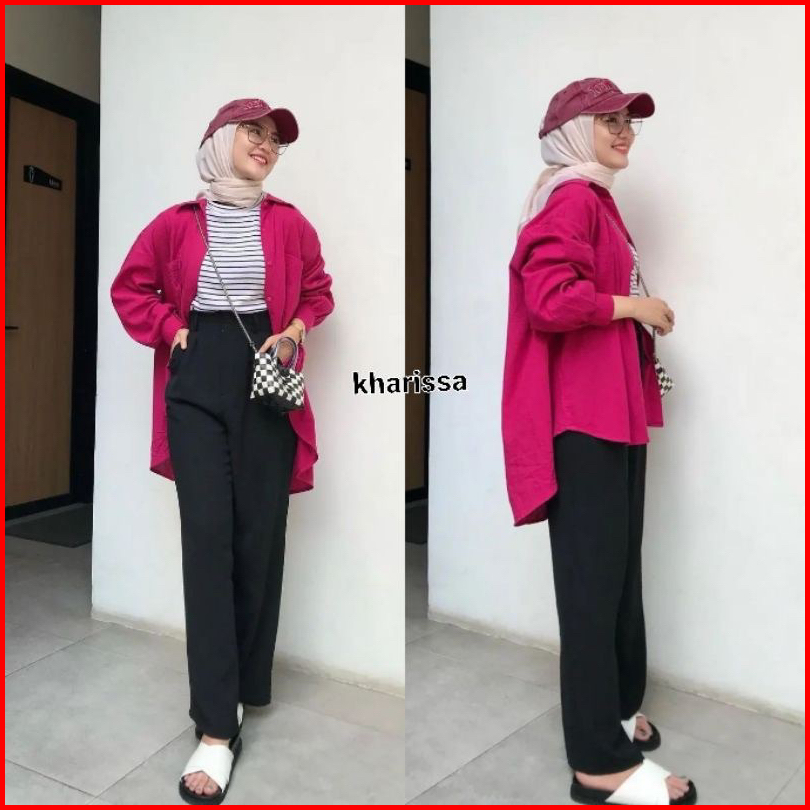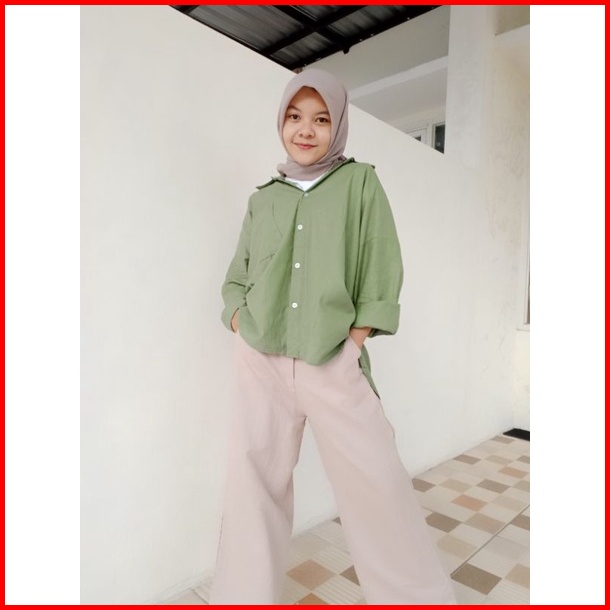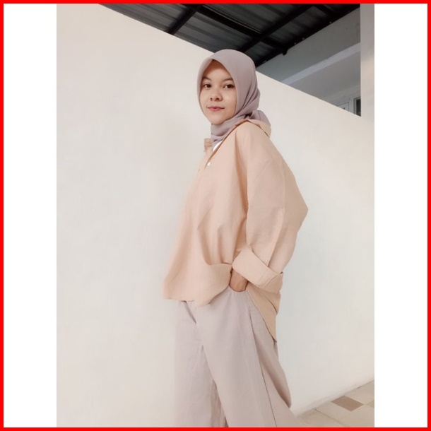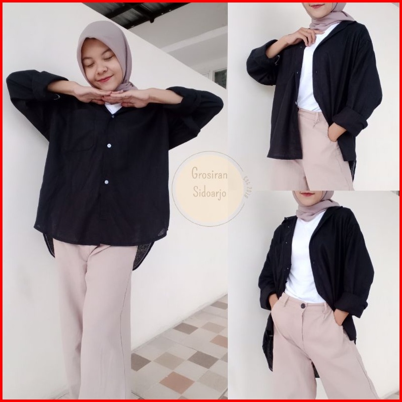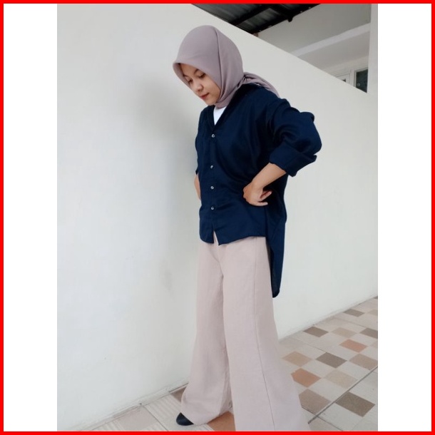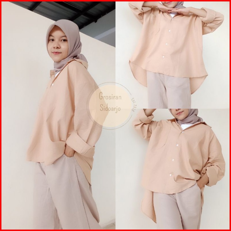 Ds - Olivia Kemeja Linen Oversize Wanita Ld 120 Cm