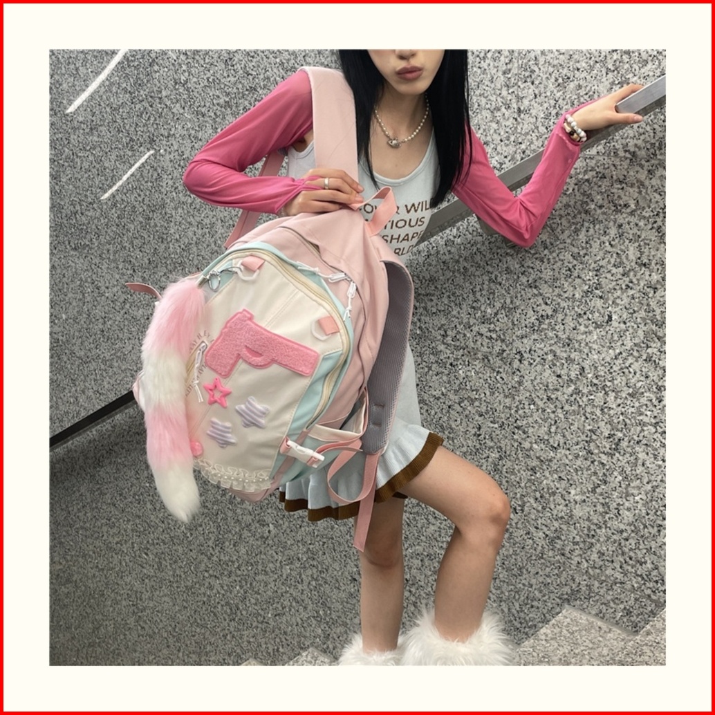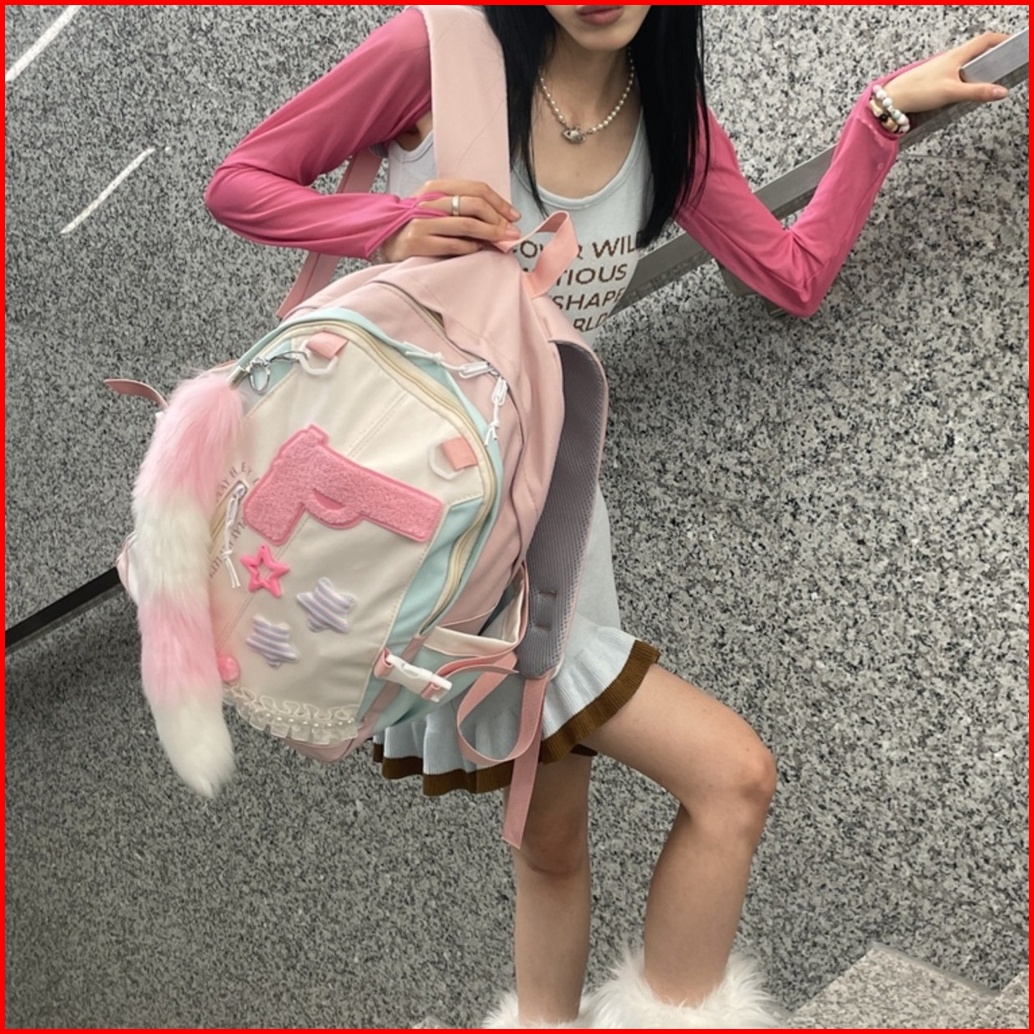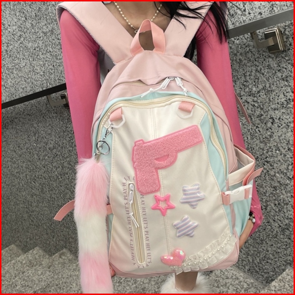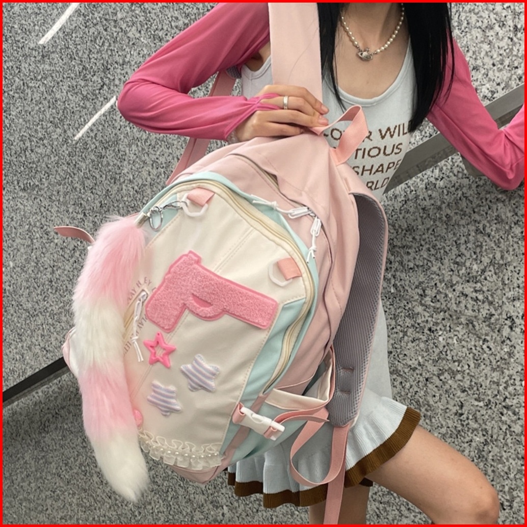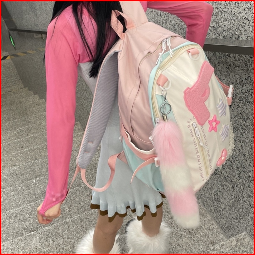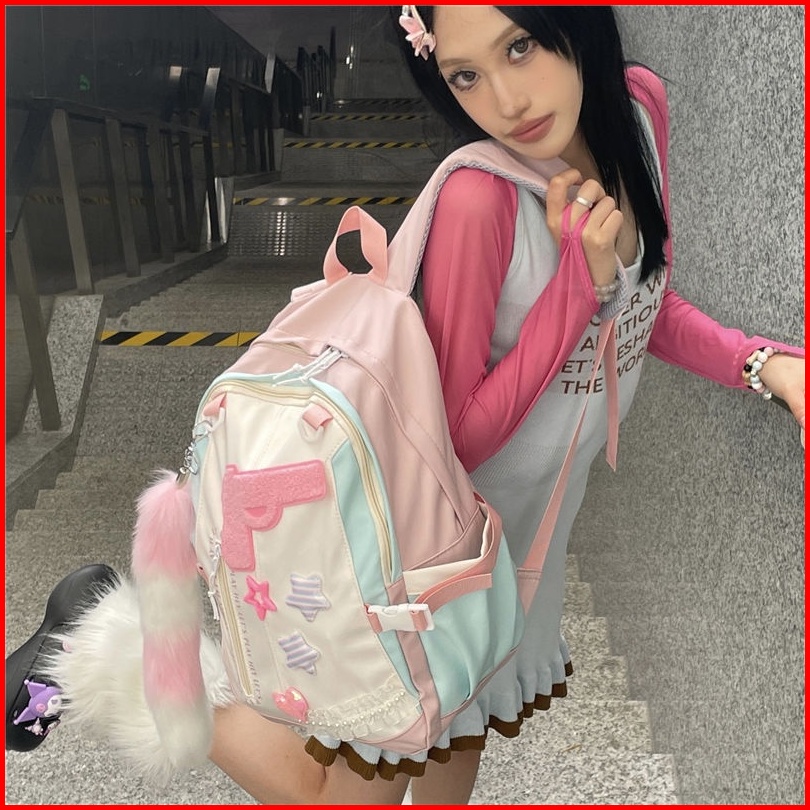 Ready Tas Sekolah Lucu Wanita Tas Bahu Kapasitas Besar Merah Muda Korea Import Fashion Kuliah Tas Ransel Laptop Volume T