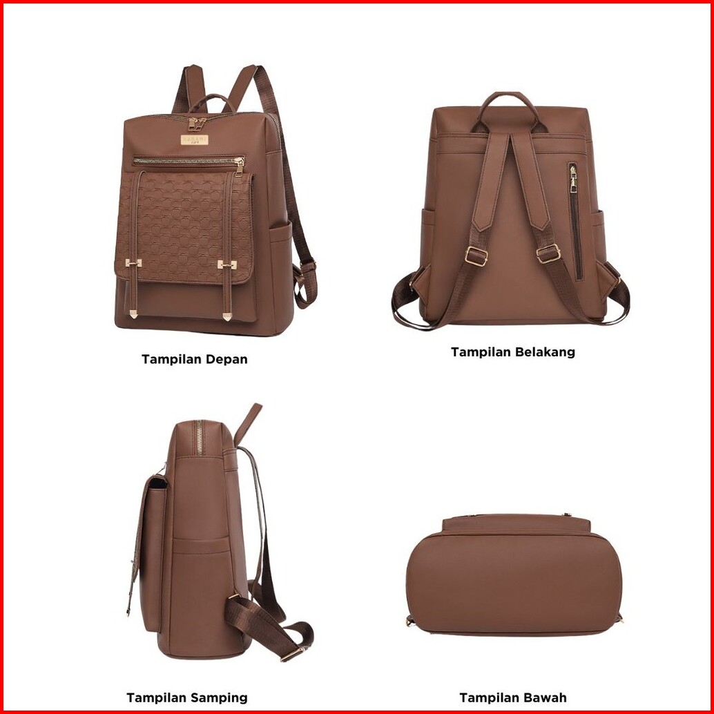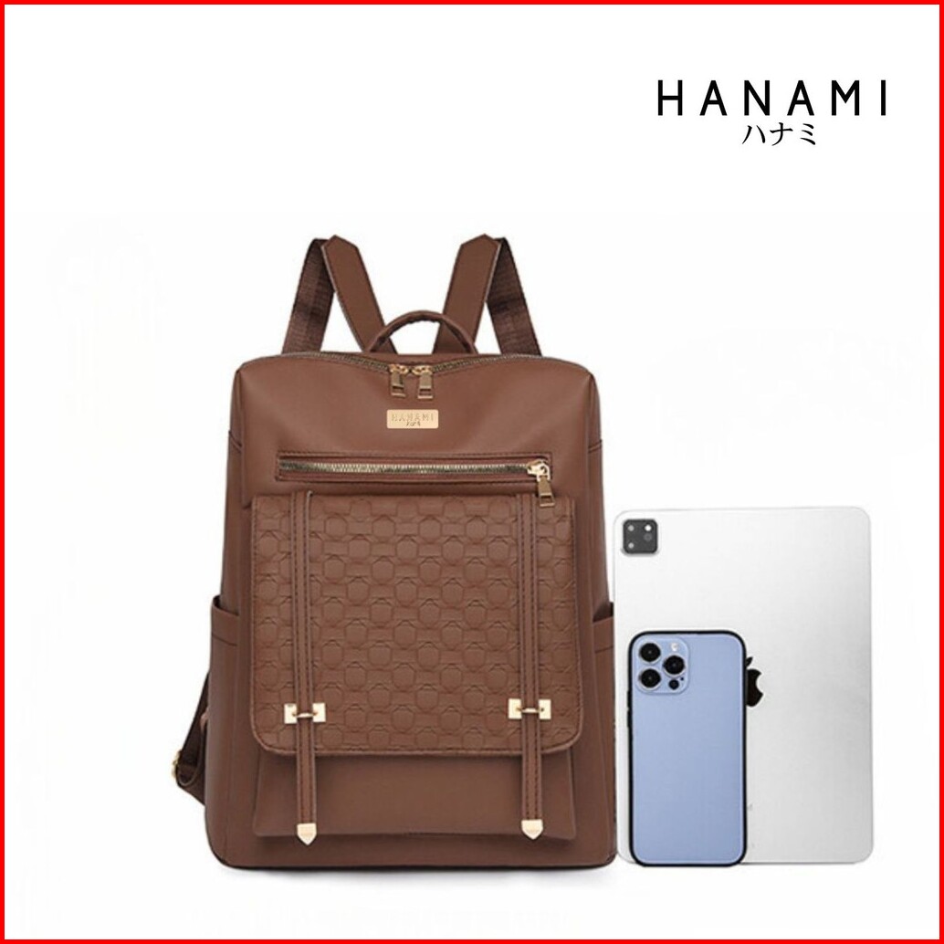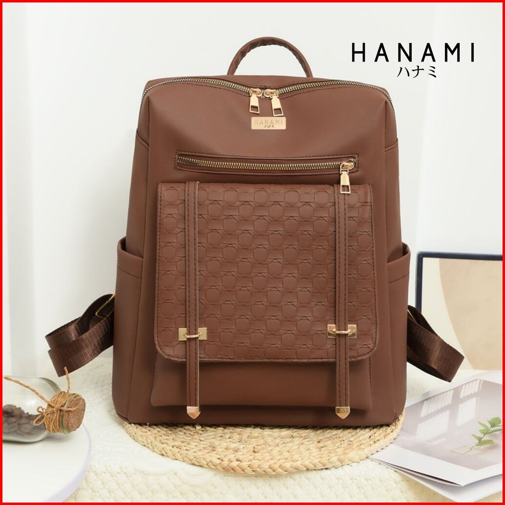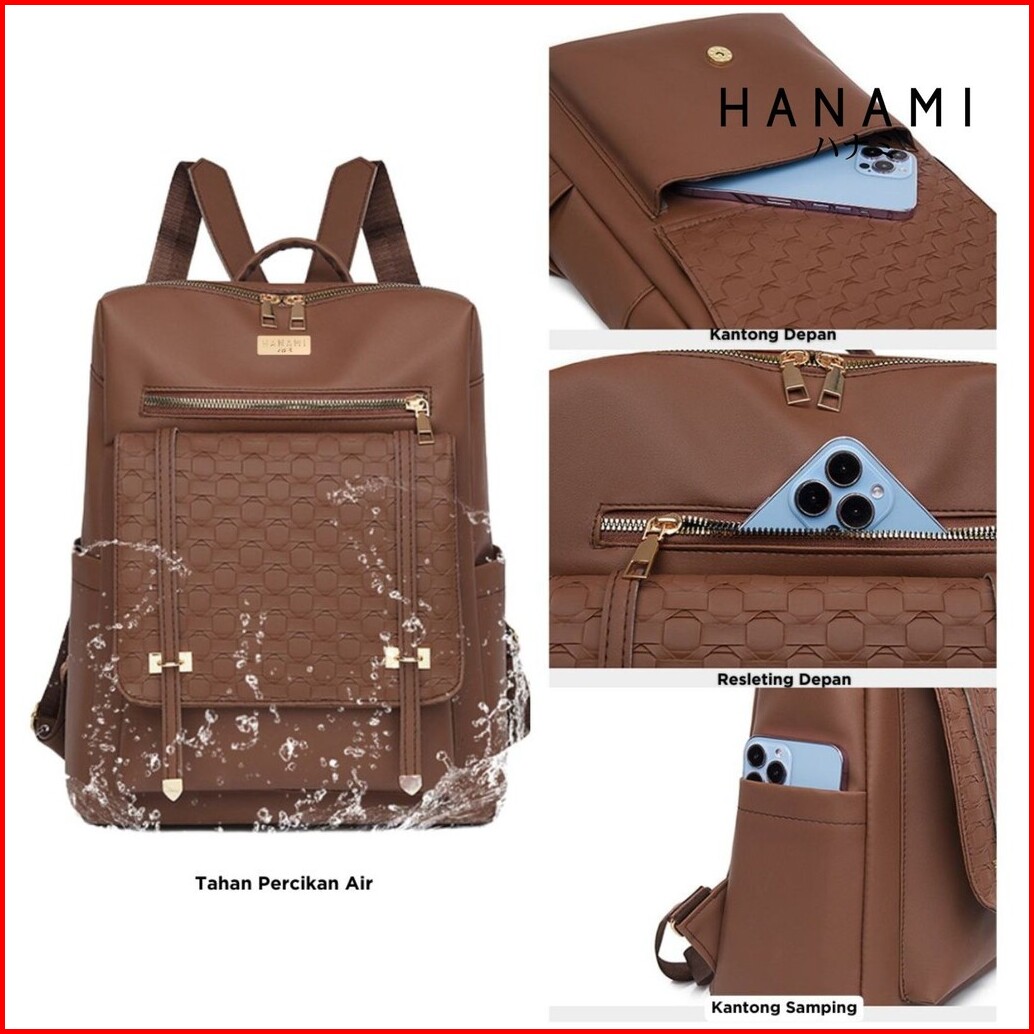 Hanami Tas Ransel Wanita Cokelat Hikaru Backpack Kulit Premium Branded Sekolah Kantor Keren Ta1033b7