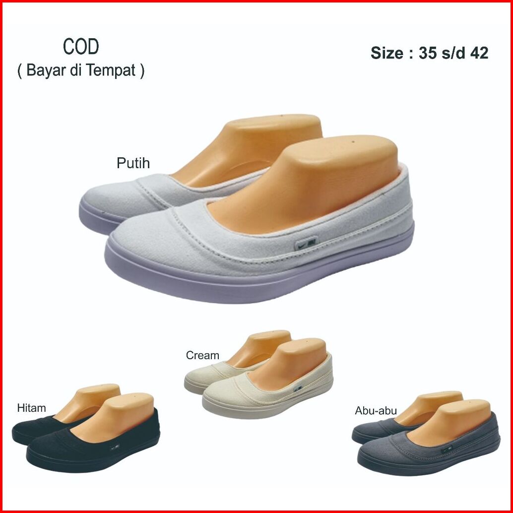 Sepatu Wanita Terbaru Slip On 05 Putih Hitam Cream Abu