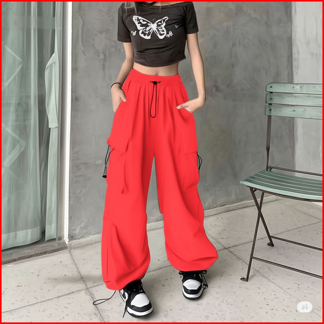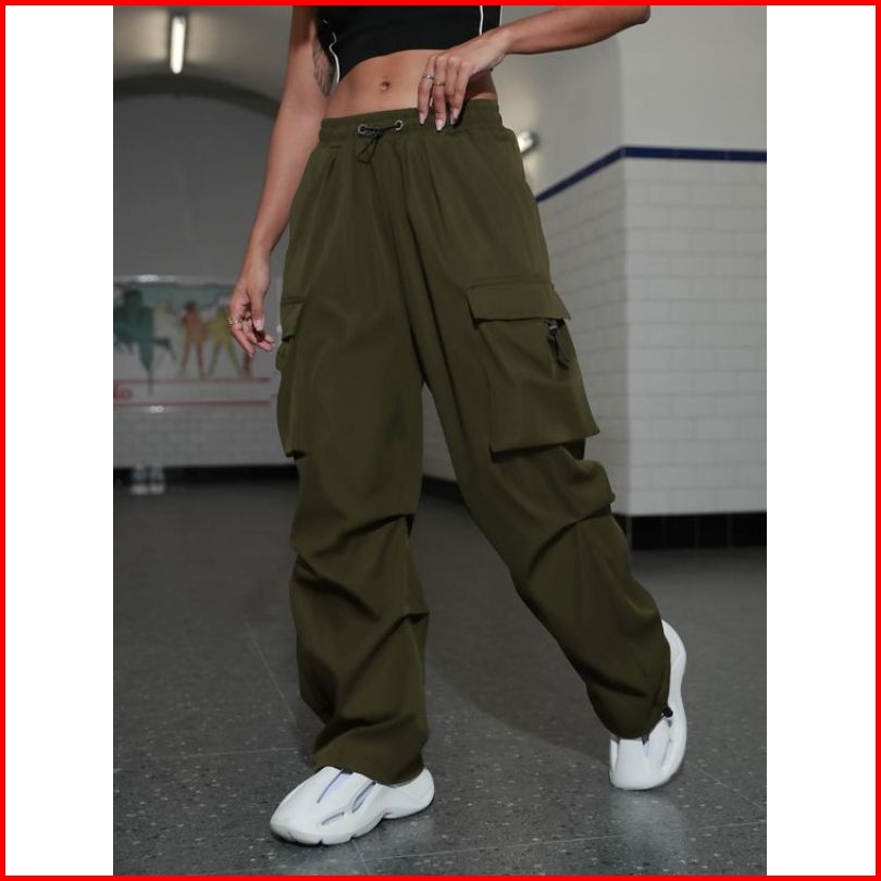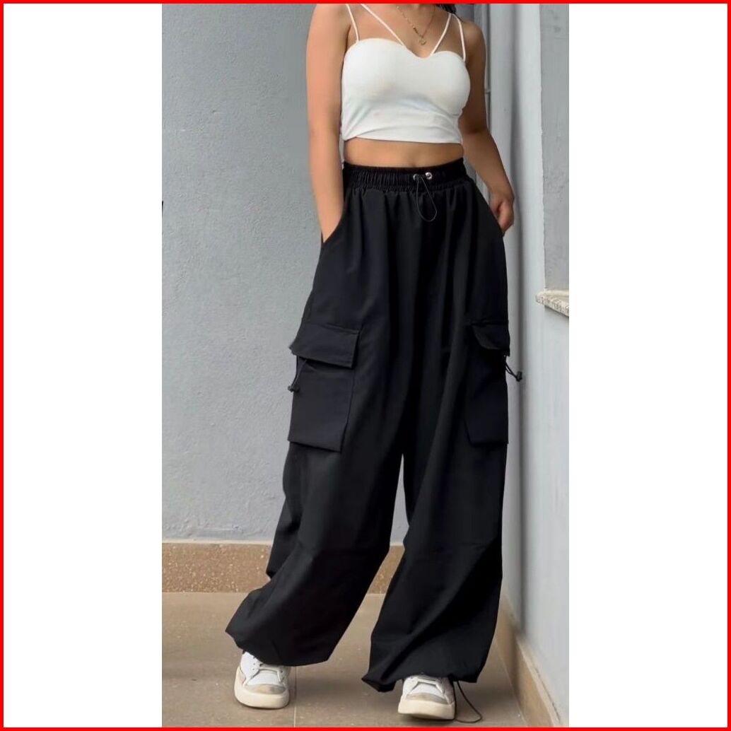 Celana Kargo Korea Wanita Panjang Harajuku Bahan Polyester Cepat Kering Pants Celana Unisex Pria Cewe