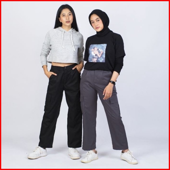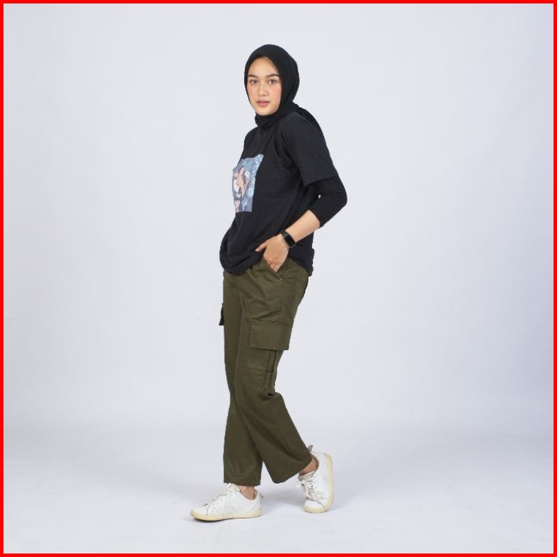 Heygloris - Hiking Cargo Pants Celana Kargo Panjang Wanita Jumbo American Drill Premium Highwaist