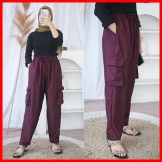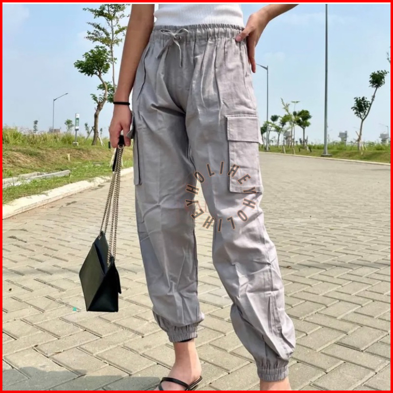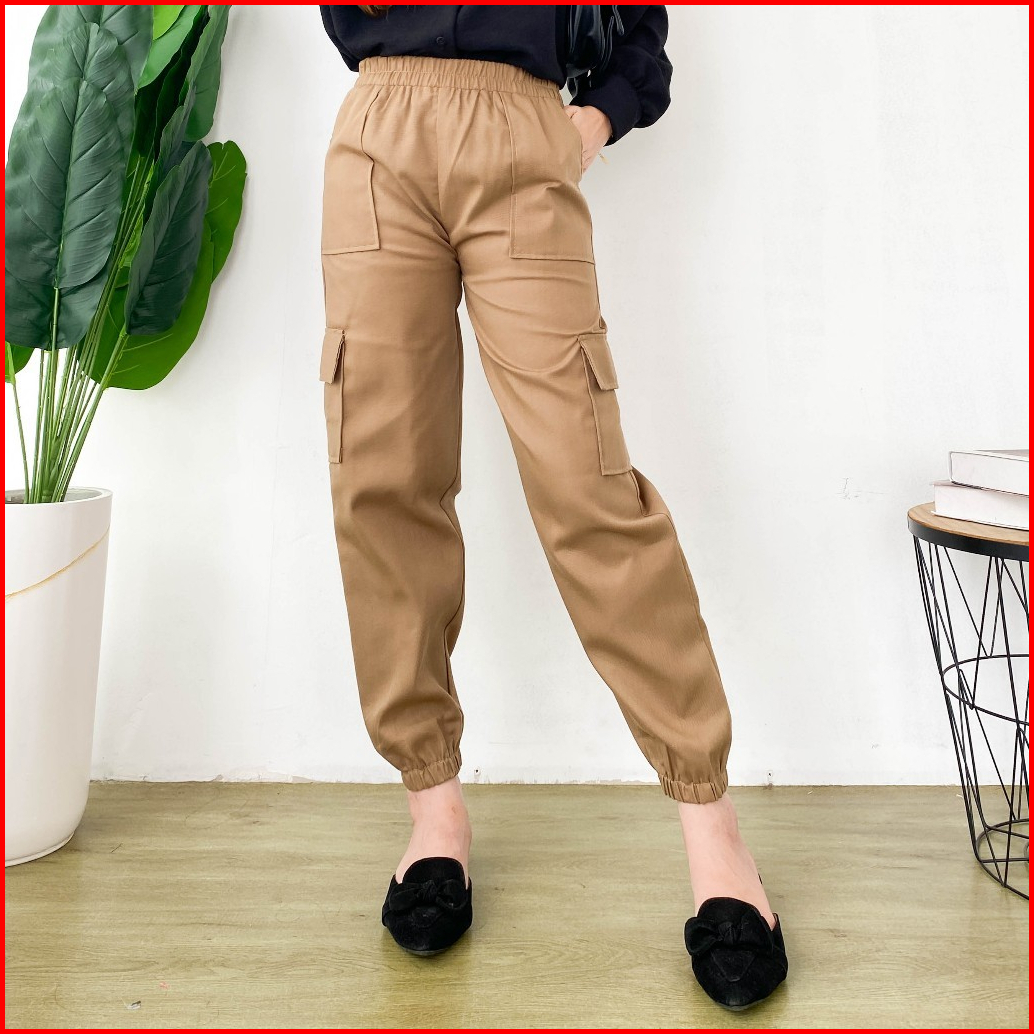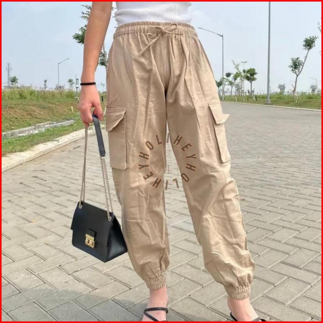 Celana Cargo Wanita Jumbo Cargo Pants Masuk Bb 35 -100 Kg Katun Stretch