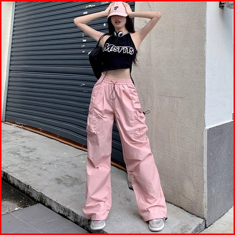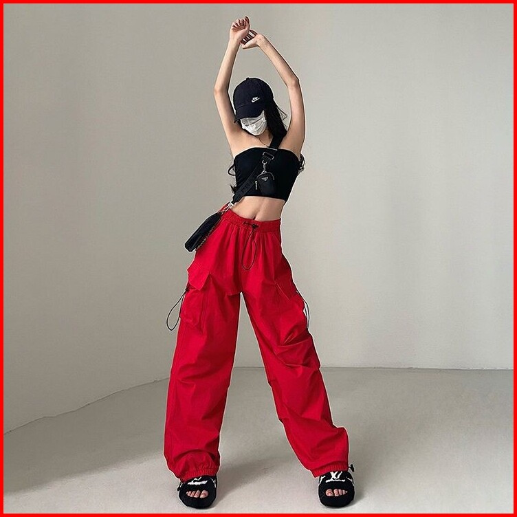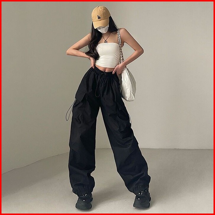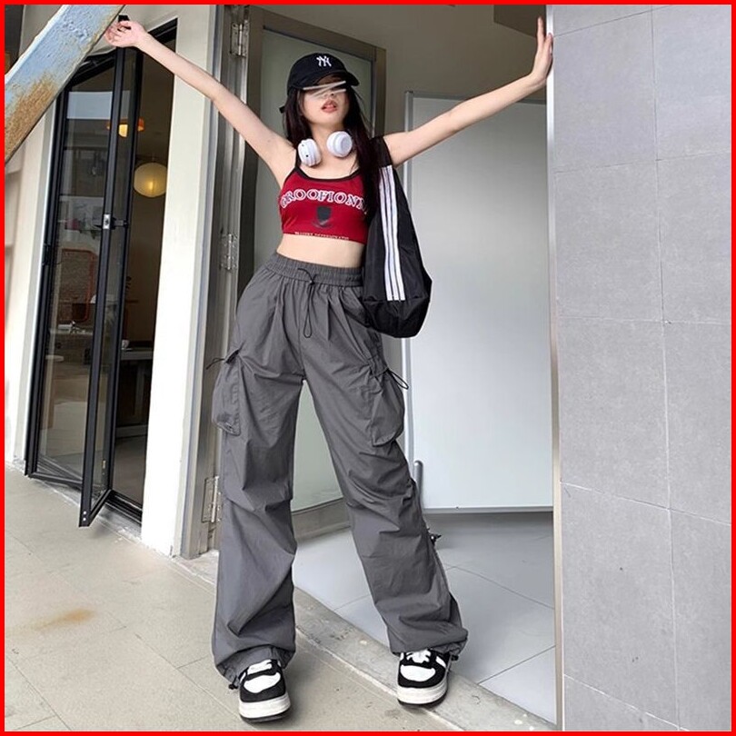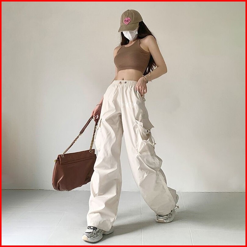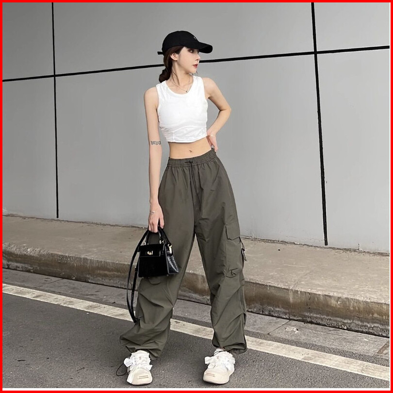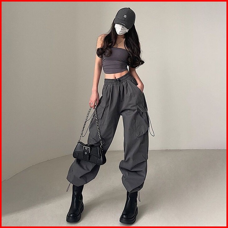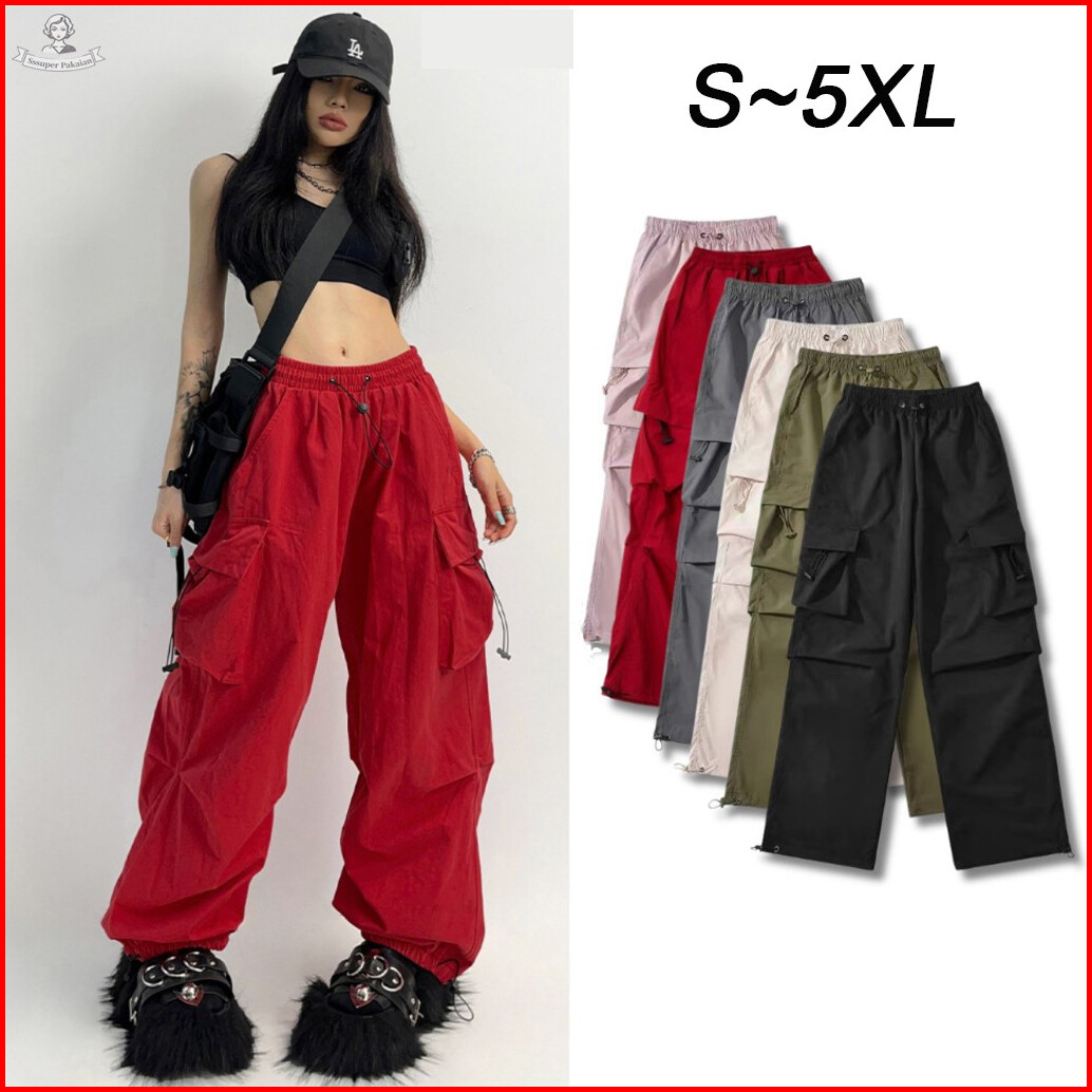 S 5xl Celana Cargo Pinggang Tinggi Retro Wanita Gaya Korea Celana Kasual Olahraga Banyak Saku Kasual