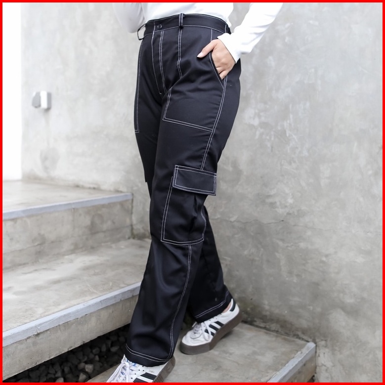 Celana Cargo List Pants I Cargo Chino Pants Premiun Black Ready Stock I Celana Baggy Kulot